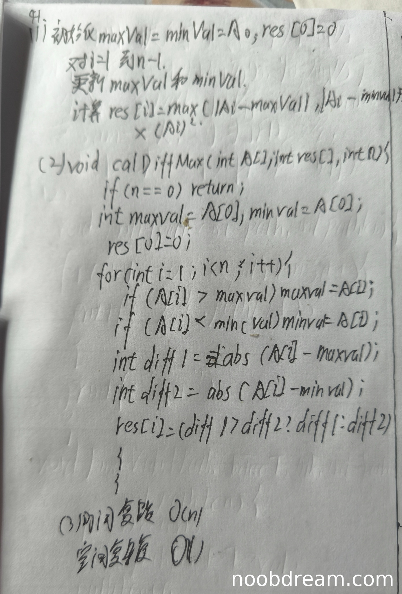 - 正确部分:正确初始化maxVal和minVal,正确更新极值,循环结构正确(+5分)