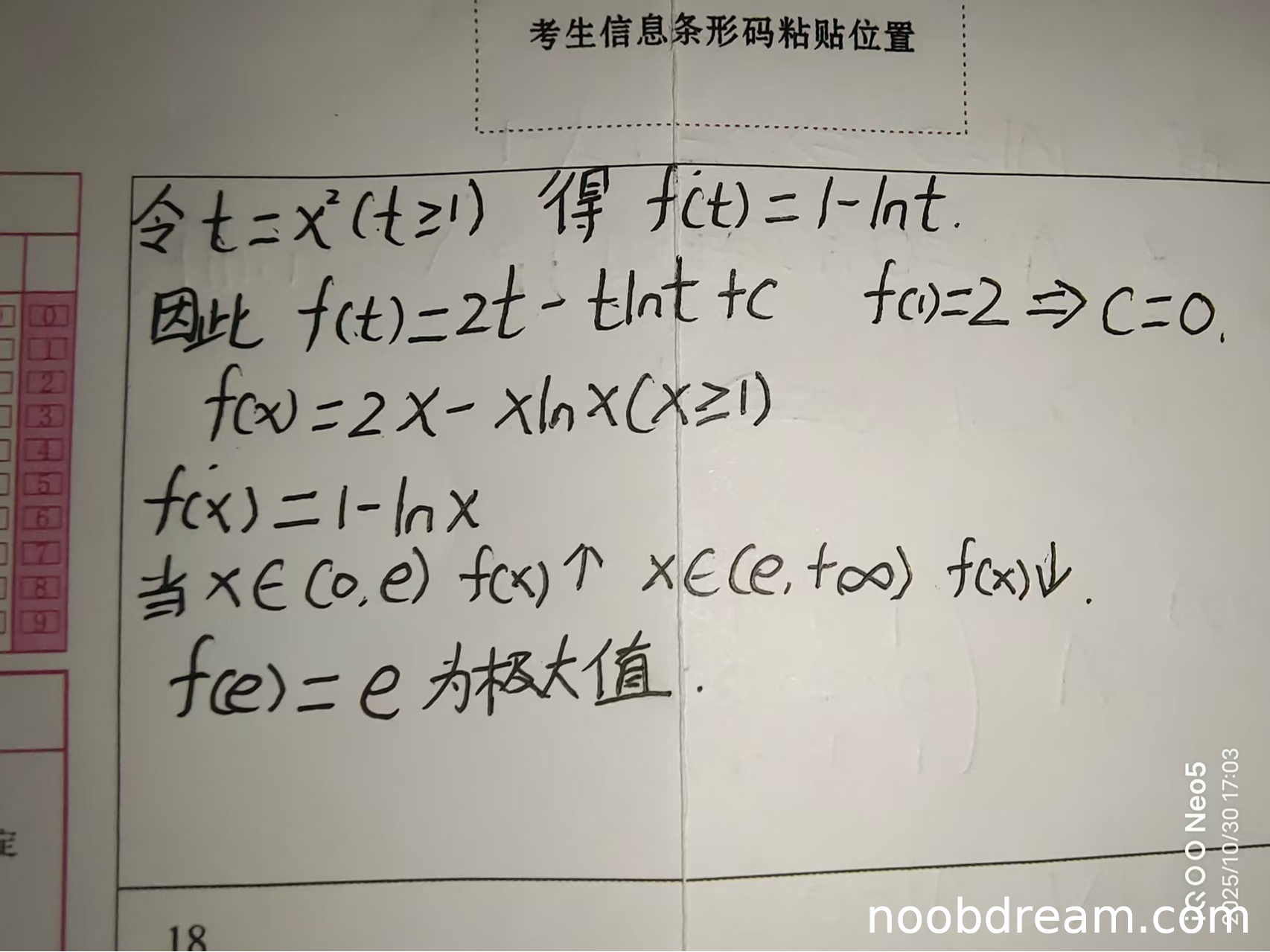 - 得出f(e)=e为极大值正确