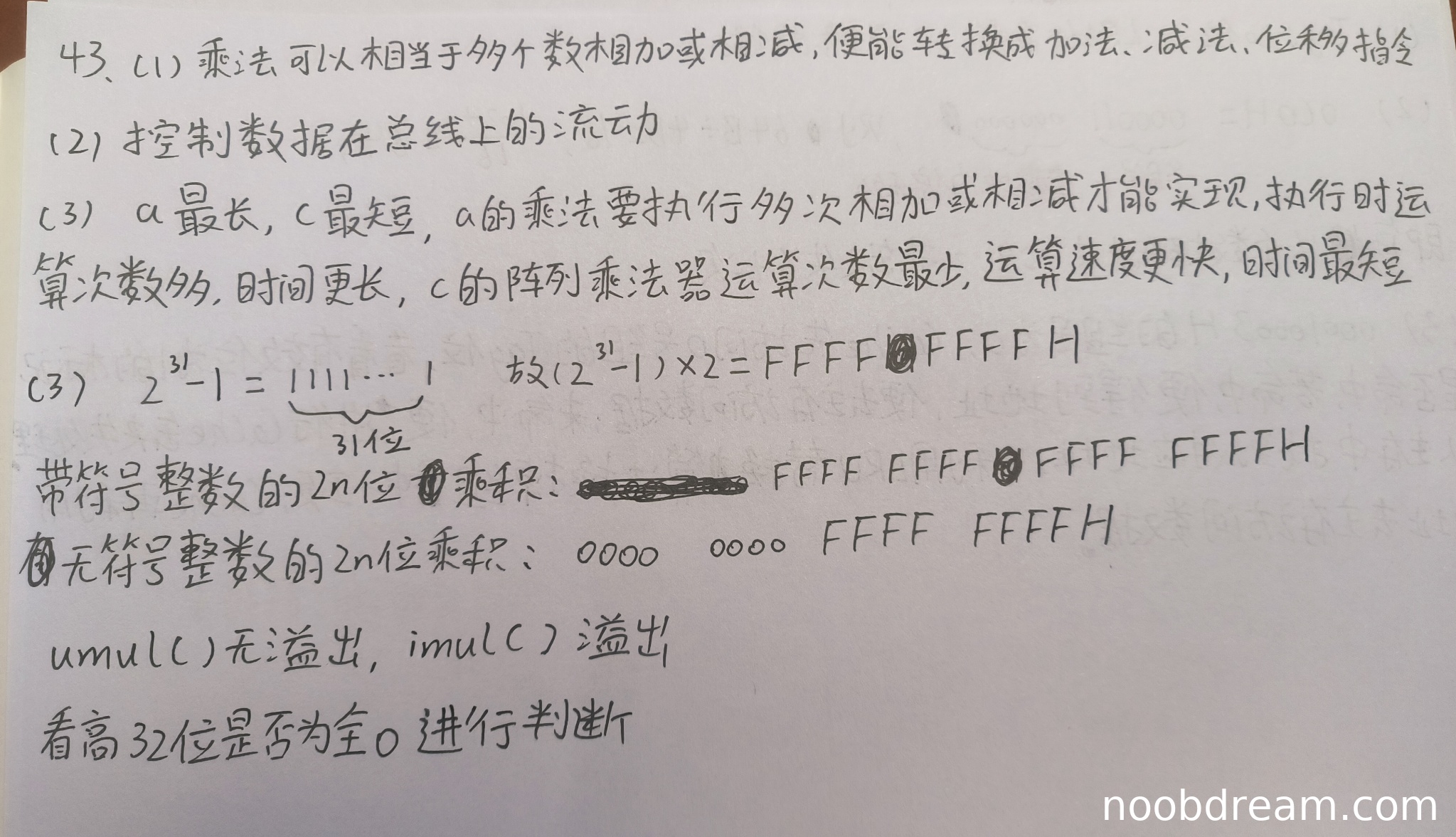 第二问:正确判断umul()无溢出、imul()溢出,理由充分。得2分。