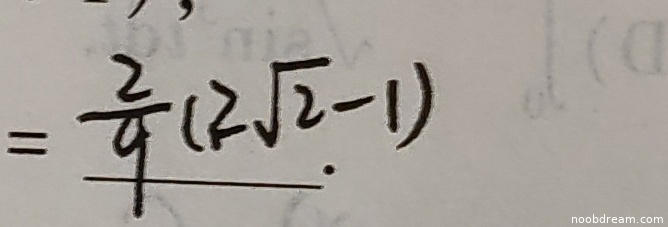 学生作答与标准答案完全一致,均为 \(\frac{2}{9}(2\sqrt{2}-1)\)。该题考查二重积分的计算,学生通过交换积分次序等方法得到正确结果,计算过程无误。根据评分要求,答案正确给满分4分。