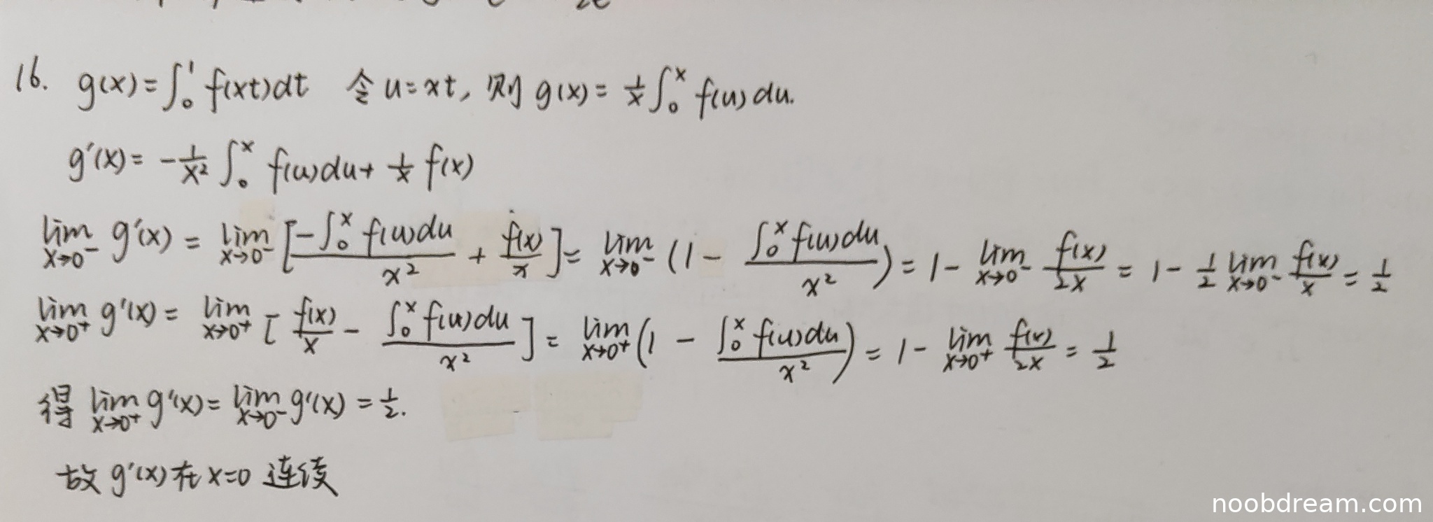 - 正确计算了lim_{x→0⁺}g'(x) = 1/2