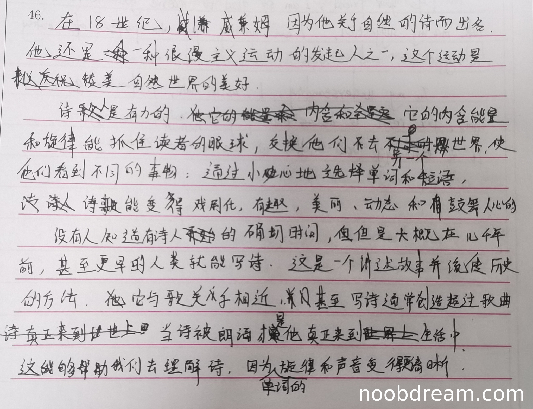 - "威廉姆"应为"威廉·华兹华斯",专有名词翻译不准确(扣1分)