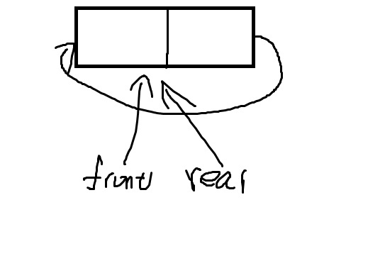 4)入队:如果队满,rear后新建一个结点,rear指向该节点,该节点指向front。否则直接rear指向该节点,再指向front;
