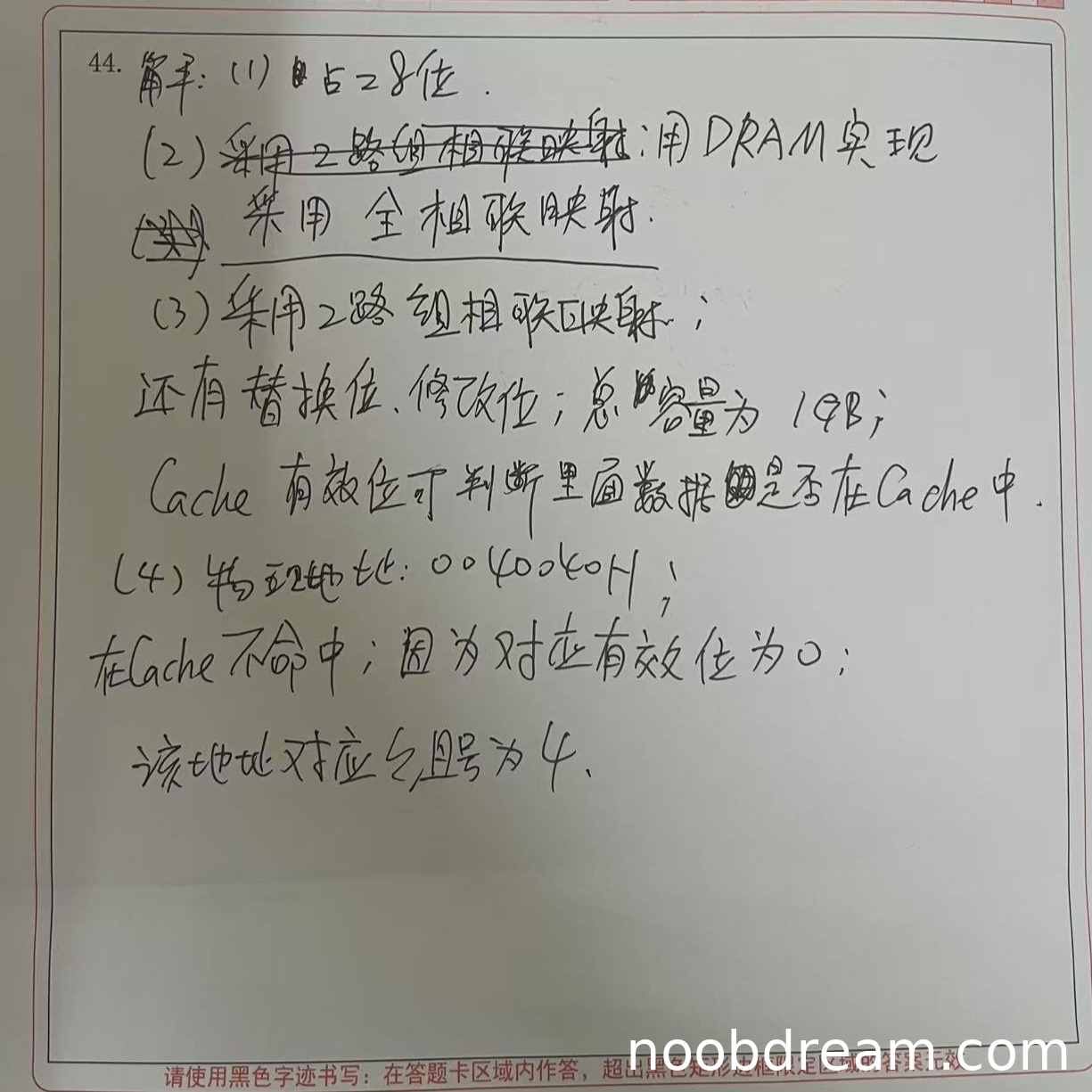 第二问:学生回答"用DRAM实现"错误,TLB应采用SRAM实现。扣2分。得0分。