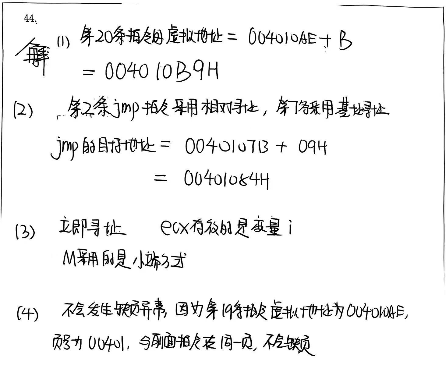 学生答案正确计算出第20条指令的虚拟地址为004010B9H,与标准答案一致。得3分。