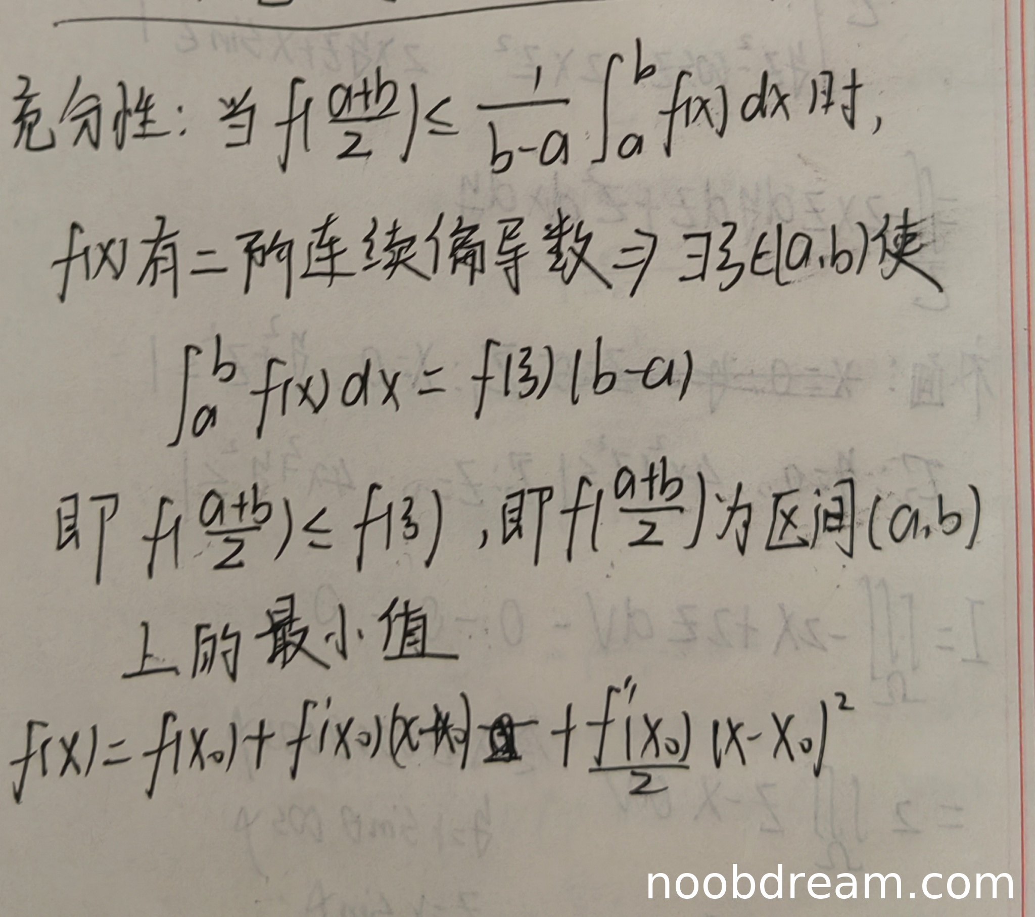 - 未正确使用泰勒公式:虽然写出了泰勒公式,但未与积分关联,也未利用$f''(x)$的符号进行推导。