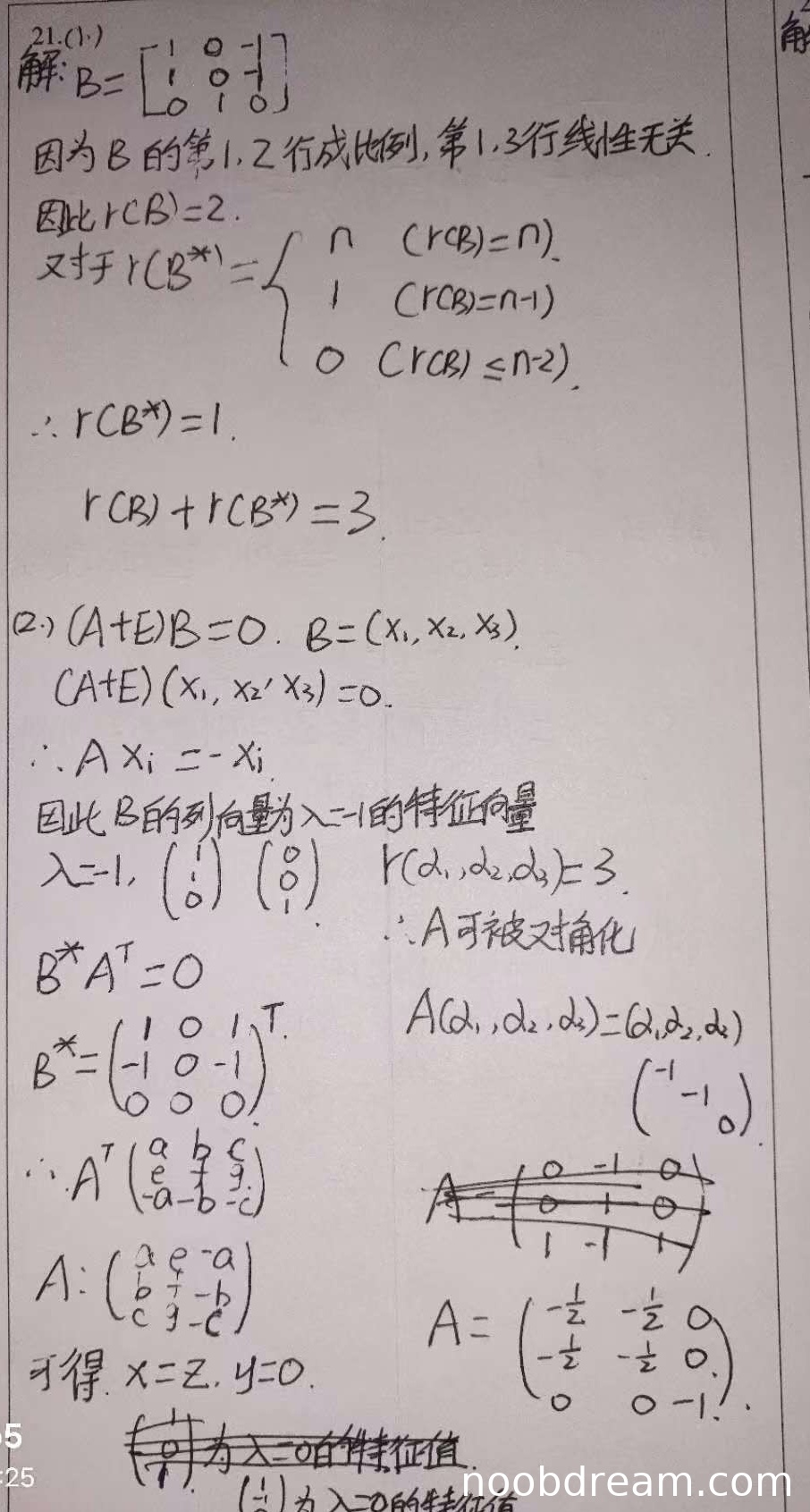 1. 对B*的计算有误(应为[1,-1,0; -1,1,0; 0,0,0]的转置)