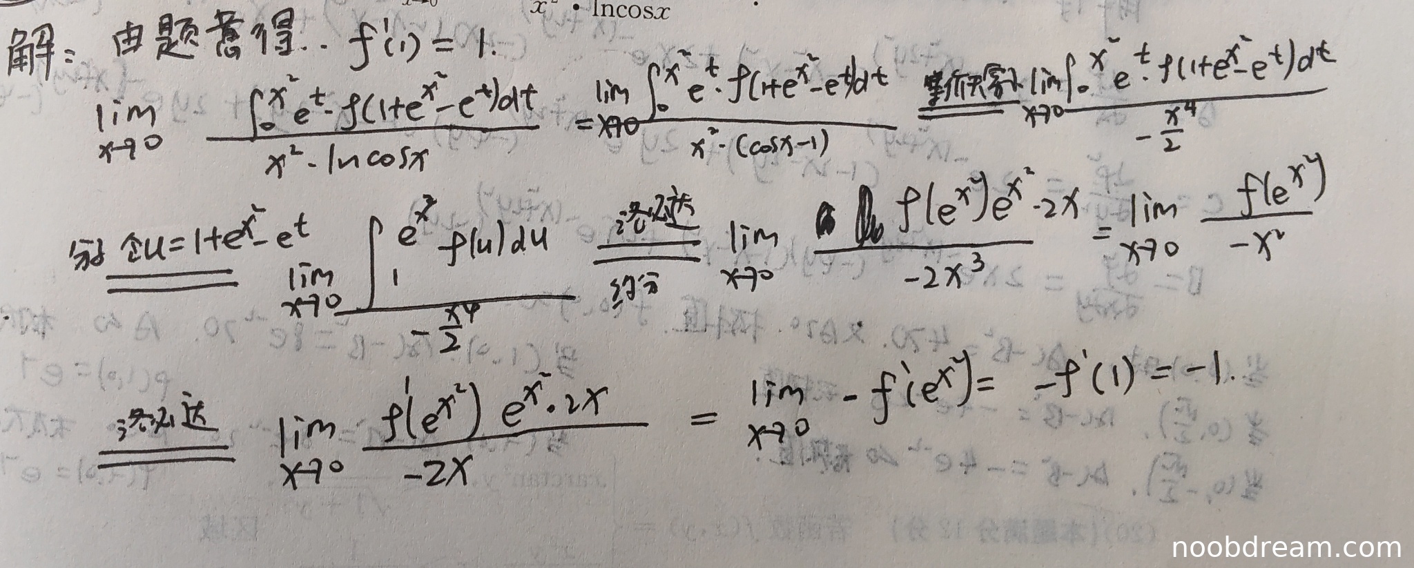 - 变量替换错误:令 \(u = 1 + e^x - e^t\) 应为 \(u = 1 + e^{x^2} - e^t\)
