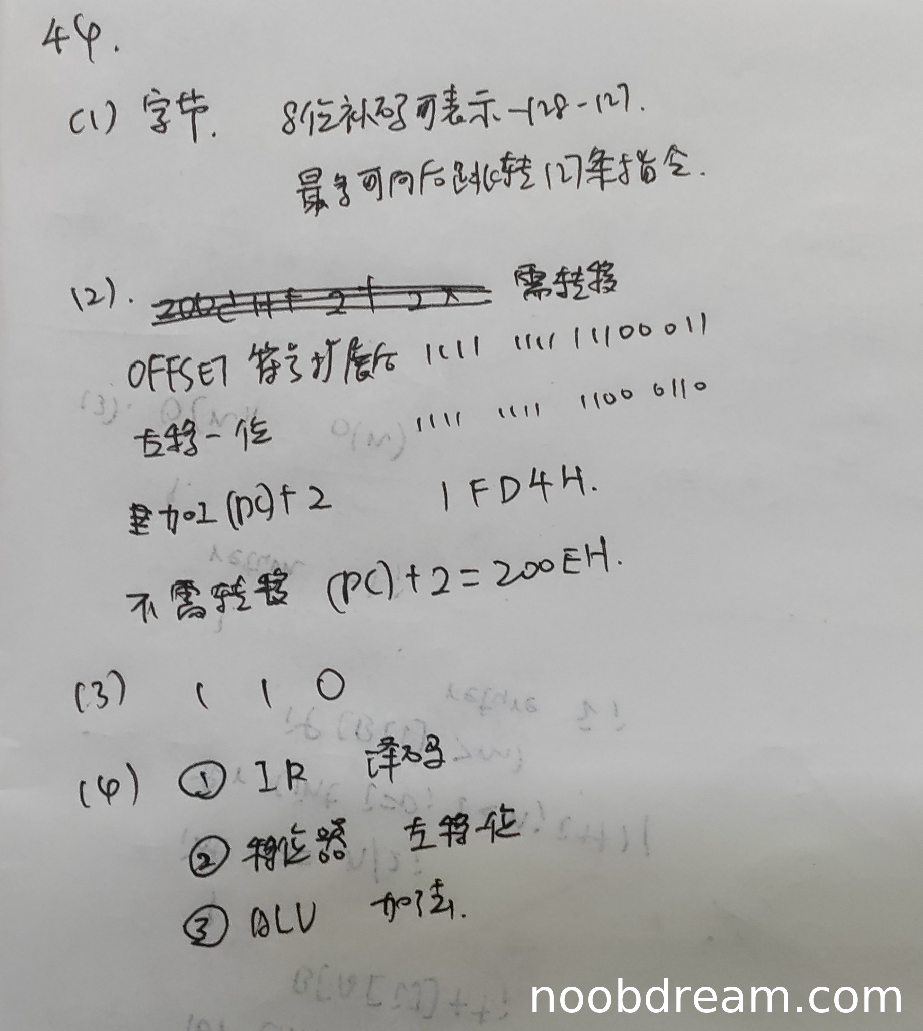 学生回答“字节”正确,得1分;回答“8位补码可表示-128~127”正确,得1分;回答“最多可向后跳转127条指令”正确,得1分。本题得3分。