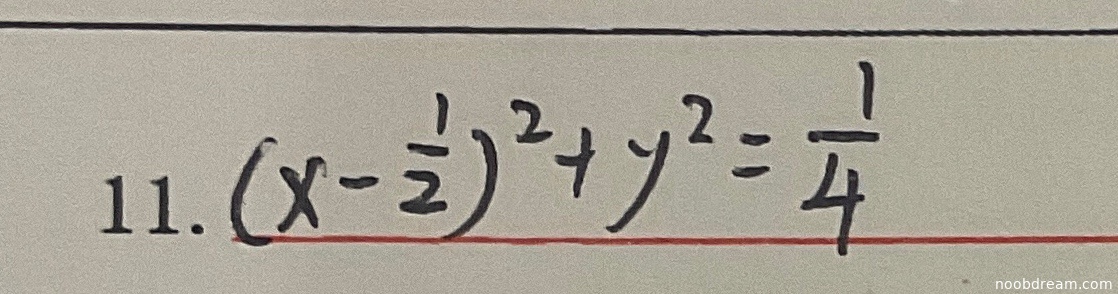 学生作答的第二次识别结果为:\((x - \frac{1}{2})^2 + y^2=\frac{1}{4}\),与标准答案\((x-\frac{1}{2})^{2}+y^{2}=\frac{1}{4}\)完全一致。虽然第一次识别结果为空,但根据题目要求,只要有一次识别正确即可不扣分。该答案正确给出了曲线在点(0,0)处的曲率圆方程,计算过程虽然未展示,但最终结果正确,符合曲率圆方程的求解要求。