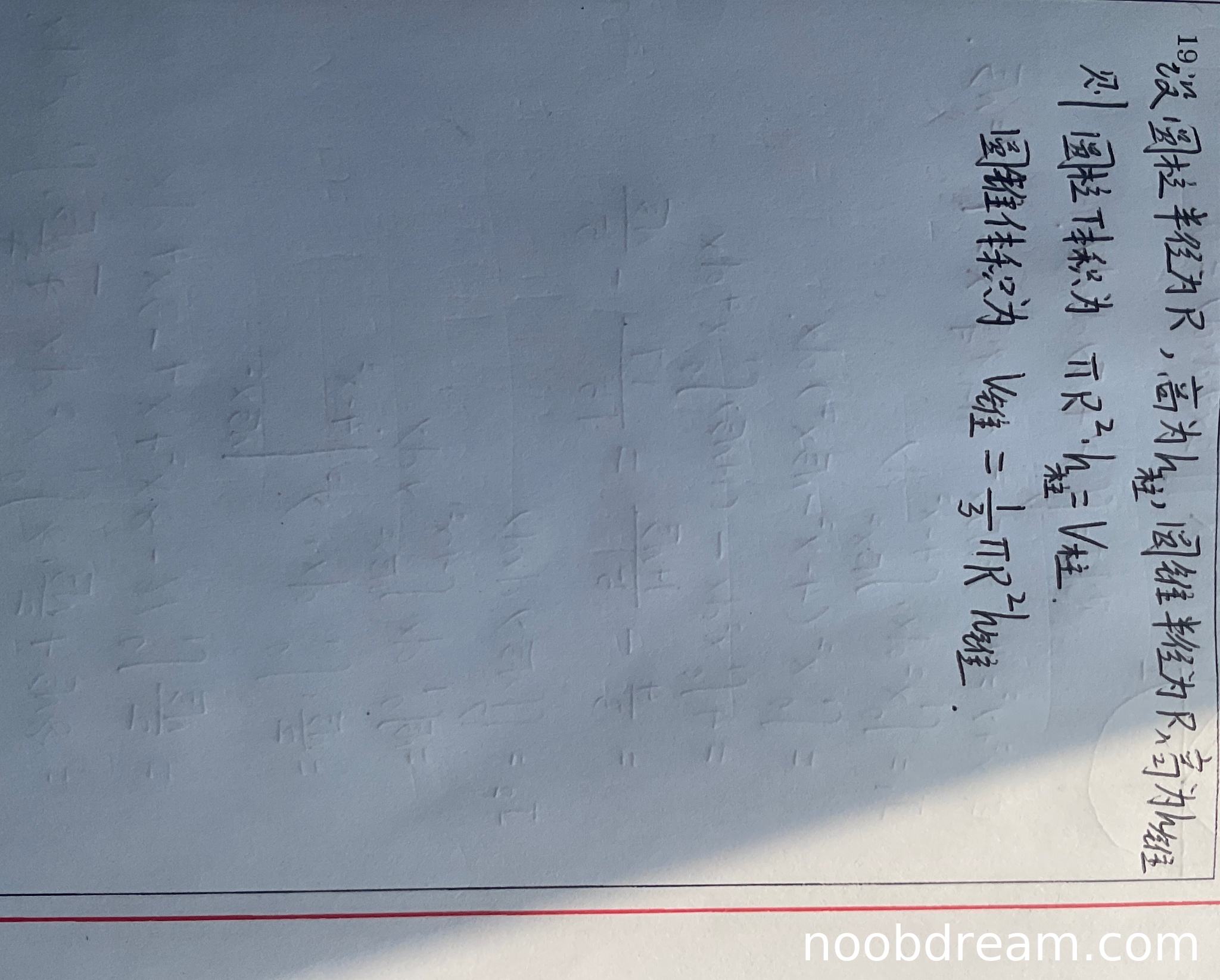 - 变量定义错误:学生将圆柱高和圆锥高都记为h,这导致后续表达式无法区分两个高度,属于逻辑错误。