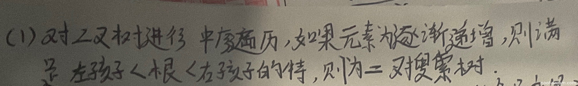 理由:学生答案的基本设计思想正确,即通过中序遍历判断序列是否递增来验证二叉搜索树。但存在以下问题: