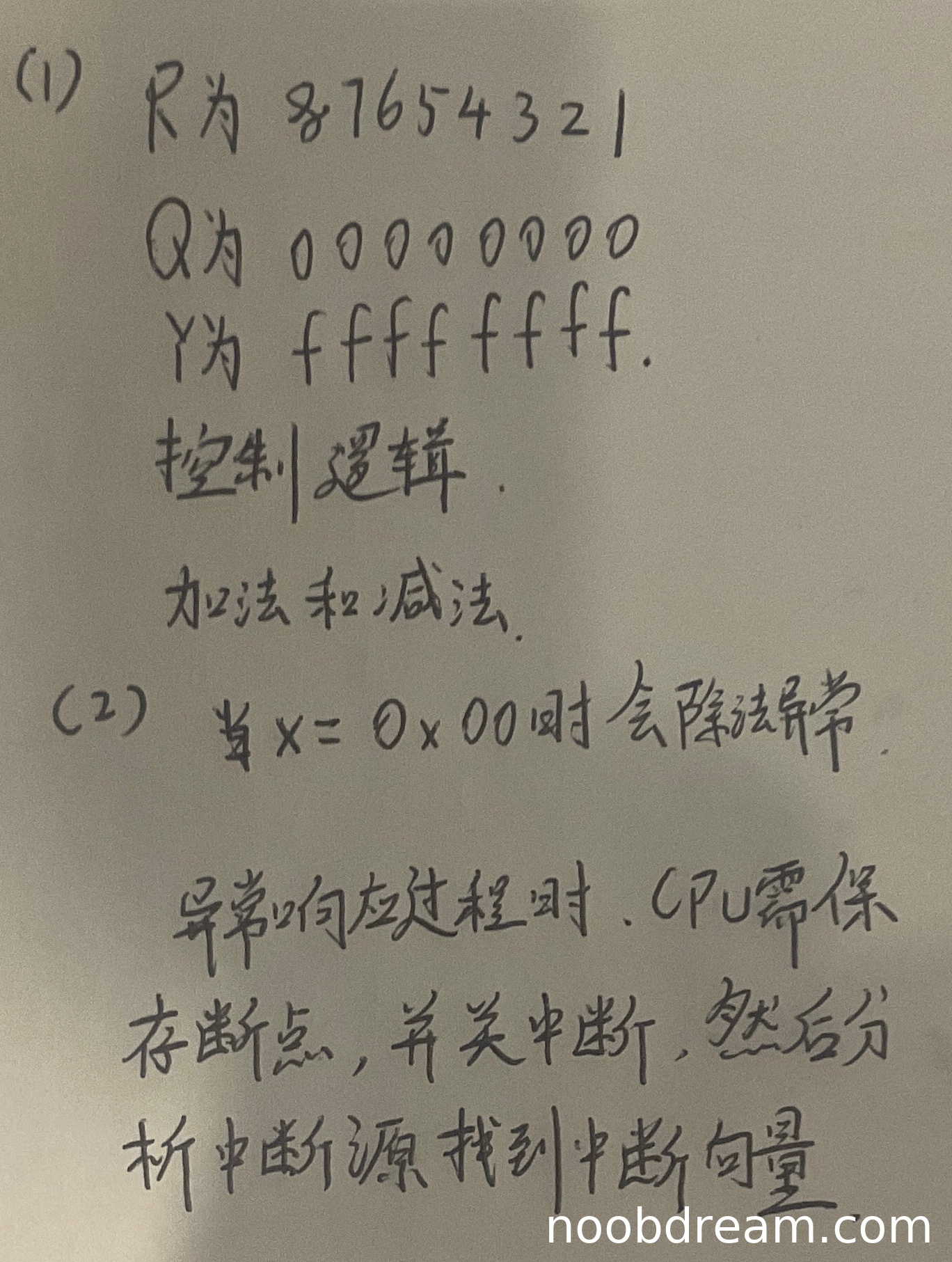 - 除法异常情况只回答"当x = 0x00时会除法异常"(部分正确,只提到除数为0的情况,缺少溢出异常情况)