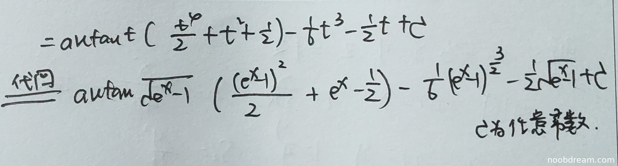 - 正确代回 \( t = \sqrt{e^x - 1} \),得到最终结果。