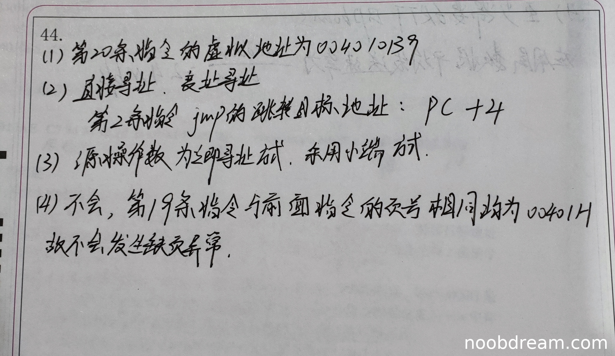 第二问:学生答案“PC + 24”错误,未给出正确计算过程,且未说明偏移量计算。扣1分。