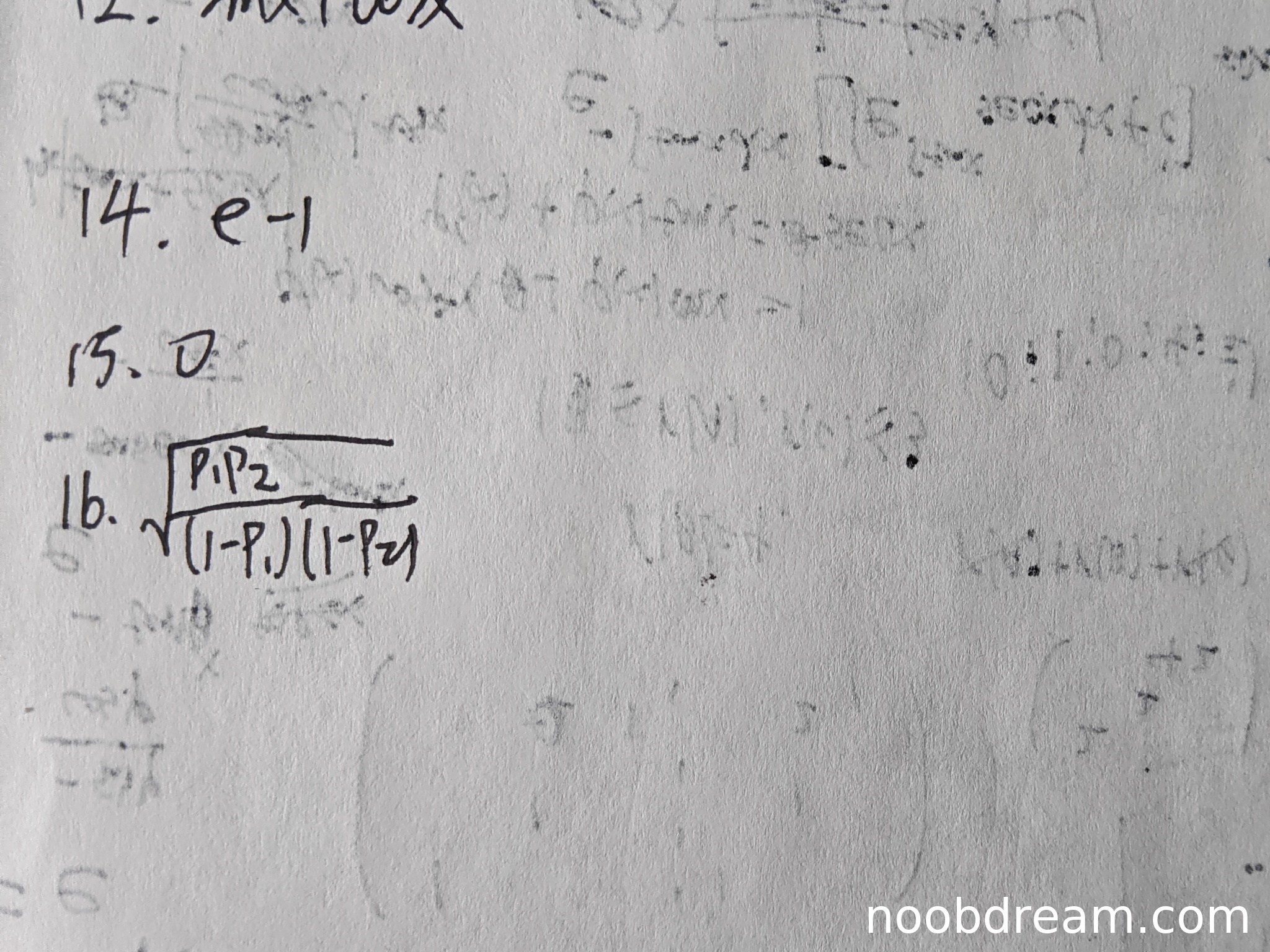 题目要求计算 \( S(-9) \),标准答案为 \( -\frac{1}{2}(e + 1) \)。学生的识别结果中,第14项为“e - 1”,第15项为“0”,第16项为与本题无关的表达式。这些内容与标准答案均不一致,且无法从识别结果中推断出学生正确解答了本题。因此,本题得分为0分。