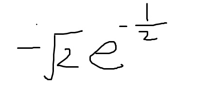 学生作答的最终答案为:$-\sqrt{2}e^{-\frac{1}{2}}$,与标准答案 $-\sqrt{2}\mathrm{e}^{-\frac{1}{2}}$ 完全一致。虽然学生答案中使用了 $e$ 而不是 $\mathrm{e}$,但这属于书写习惯差异,不影响数学含义。根据评分要求,核心逻辑正确且结果准确,因此得满分5分。