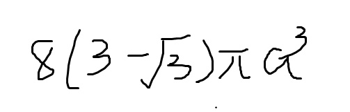 学生作答的最终识别结果为 $8(3 - \sqrt{3})\pi a^{3}$,与标准答案 $8(3 - \sqrt{3})\pi a^3$ 完全一致。虽然识别过程中可能存在一些格式差异(如指数符号的书写方式),但根据题目要求,这些不影响核心逻辑的识别错误不扣分。因此,该答案正确,得5分。