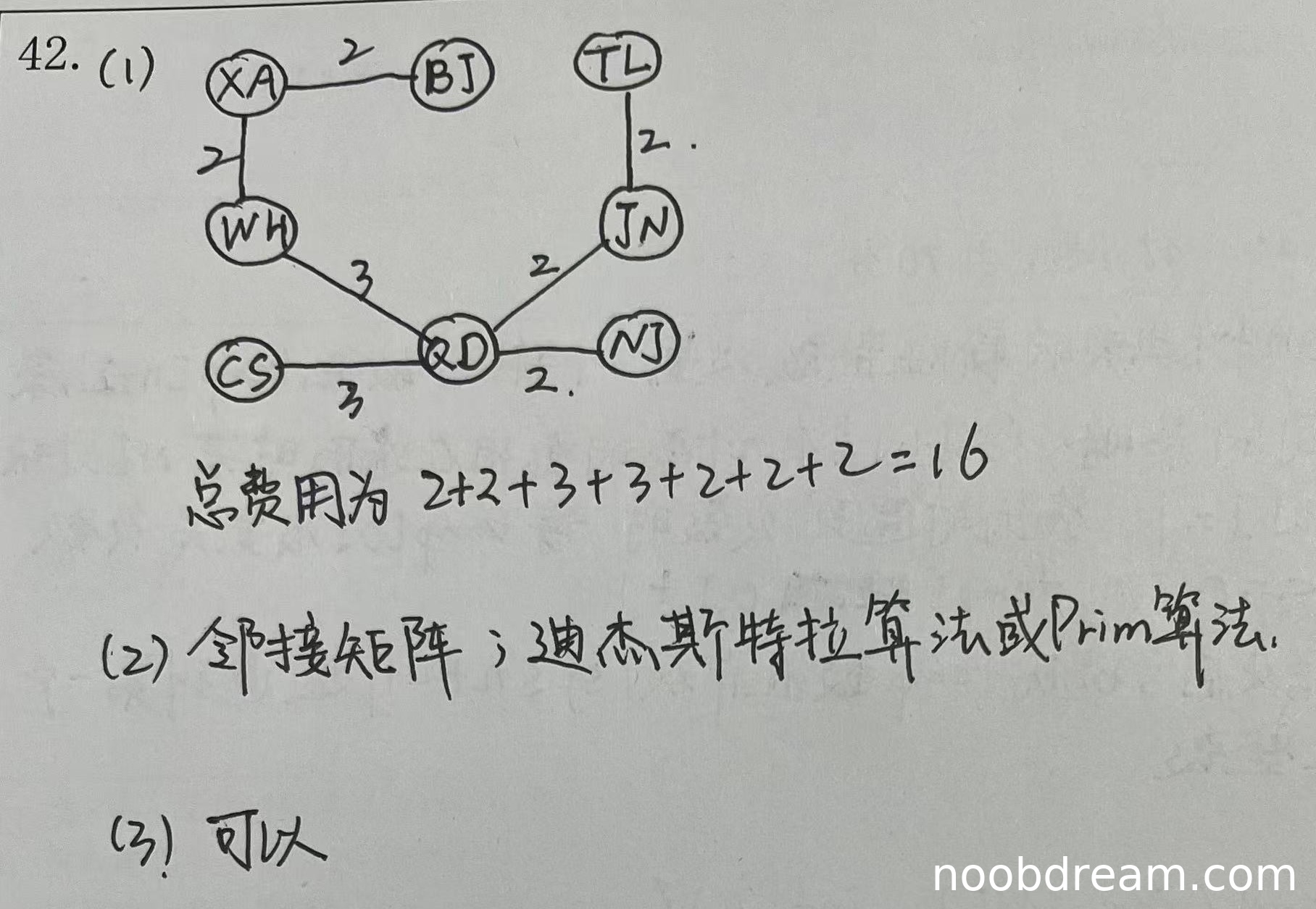 学生回答"可以"收到IP分组。根据标准答案,这取决于采用哪种最小生成树方案:方案1中TL到BJ距离超过5跳,H2不能收到;方案2中距离在5跳内,H2可以收到。由于学生未指定采用哪种方案,且题目要求基于(1)中的最经济方案,而学生(1)中未明确方案,但考虑到可能存在方案2的情况,回答"可以"在某种情况下正确。但由于问题具有不确定性,且学生未分析具体情况,给1分。