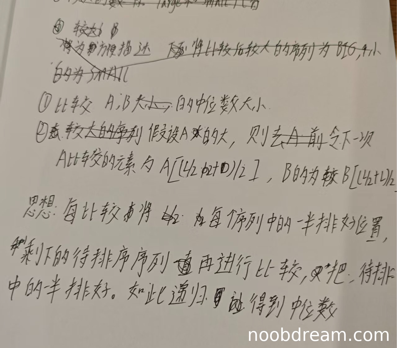理由:学生描述的思想较为模糊,没有明确说明如何舍弃序列的一半以及舍弃的规则。虽然提到了比较中位数和递归的思想,但没有具体说明在ab时如何操作,也没有提到终止条件。与标准答案相比,缺少关键的设计细节,因此扣3分。