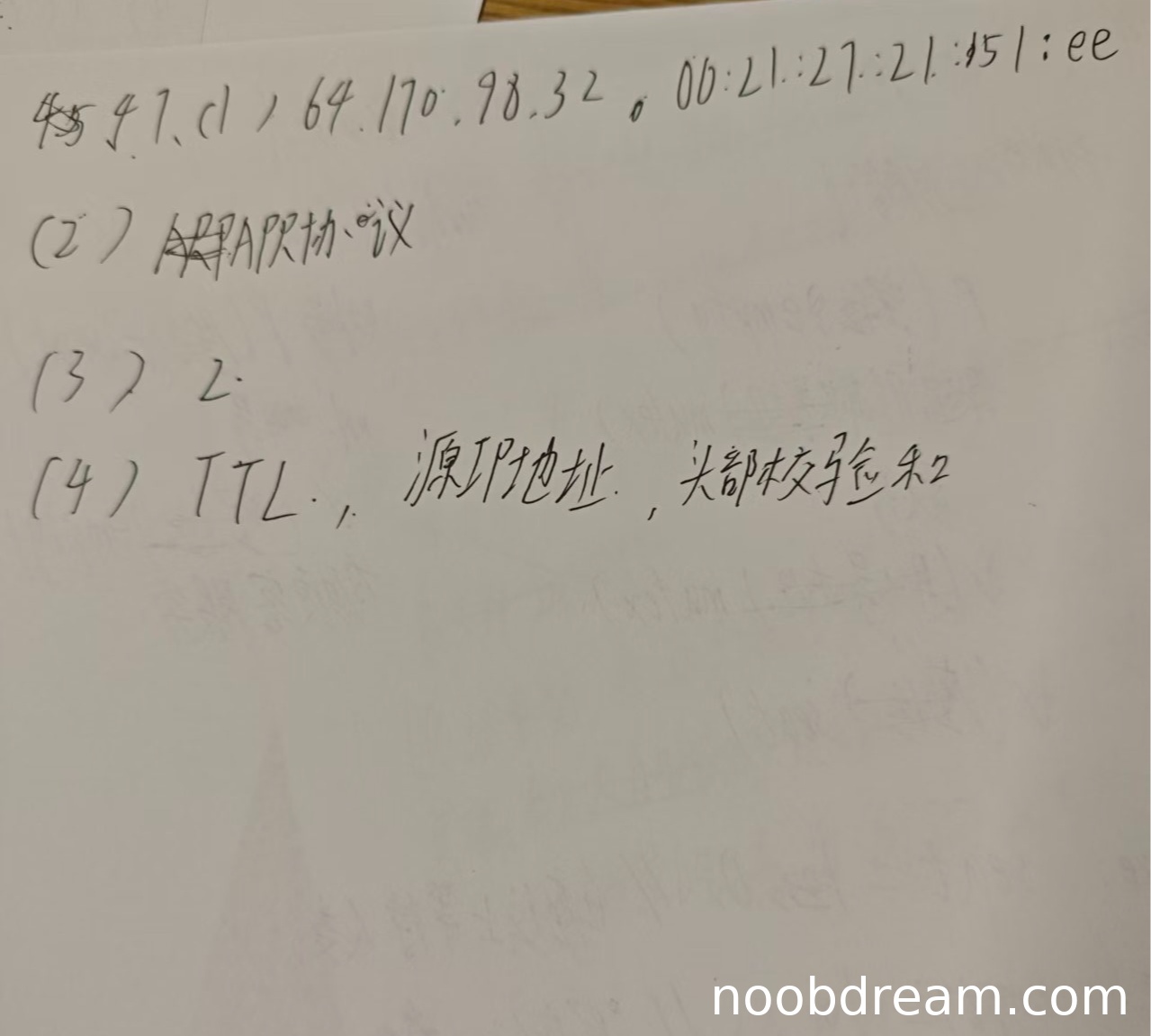 第二问:未回答封装ARP请求报文的以太网帧的目的MAC地址,扣1分。