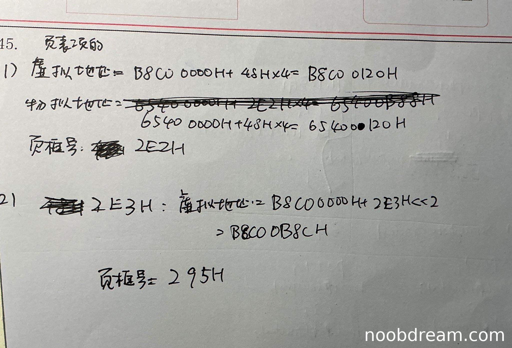 - 页表项虚拟地址计算正确:B8C0 0000H + 2E3H<<2 = B8C0 0B8CH ✓(<<2等同于×4)