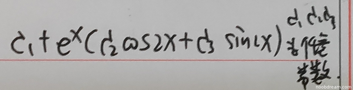 学生给出的答案为:\(c_{1}+e^{x}(c_{2}\cos 2x + c_{3}\sin 4x)\),其中 \(c_{1}, c_{2}, c_{3}\) 为任意常数。