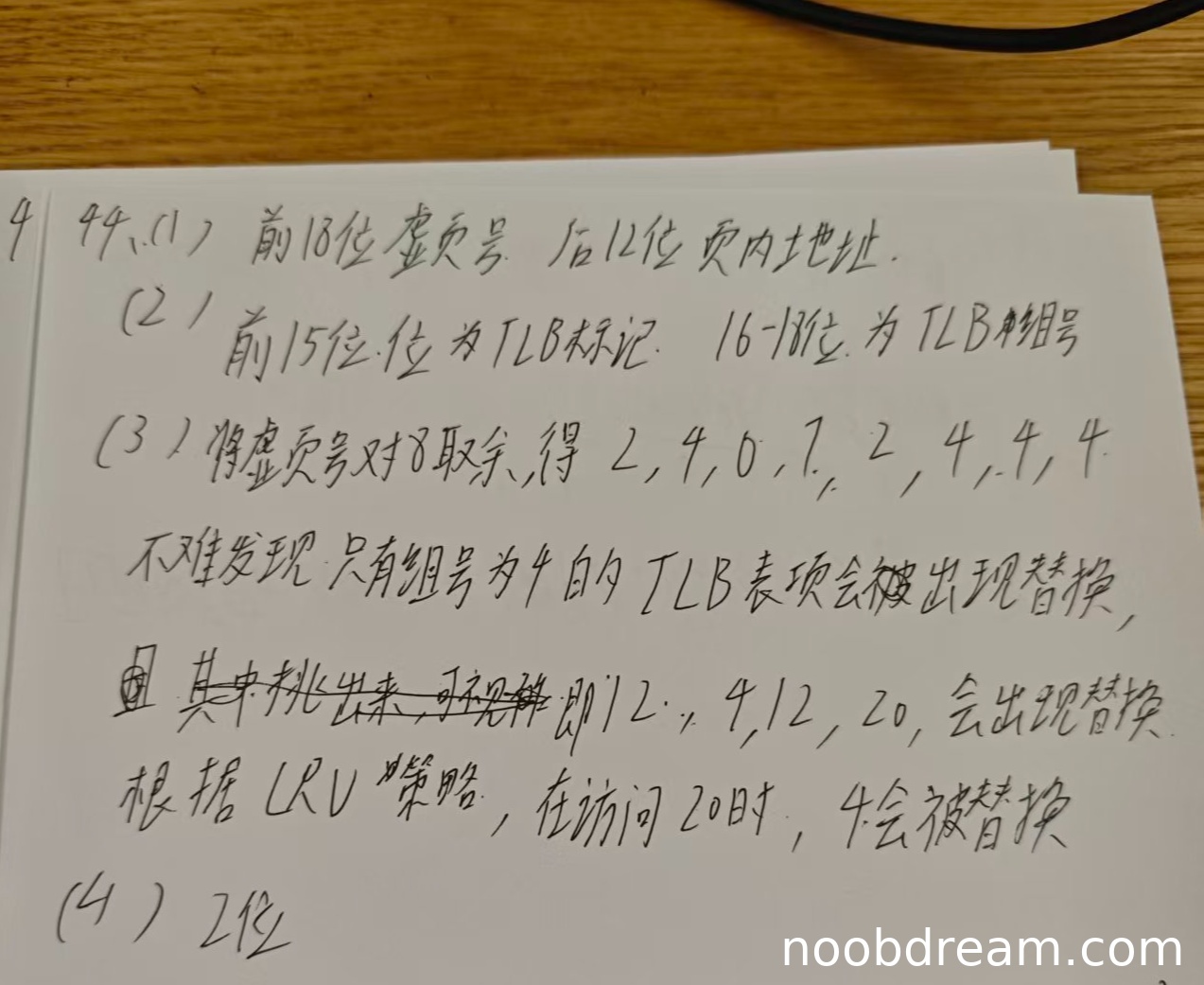 标准答案:虚拟地址高18位为虚页号,低12位为页内地址。