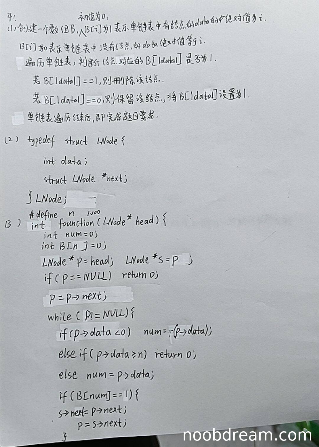 3. 当p->data≥n时直接return 0,这会提前结束函数,应该处理这种情况而不是直接返回(扣1分)