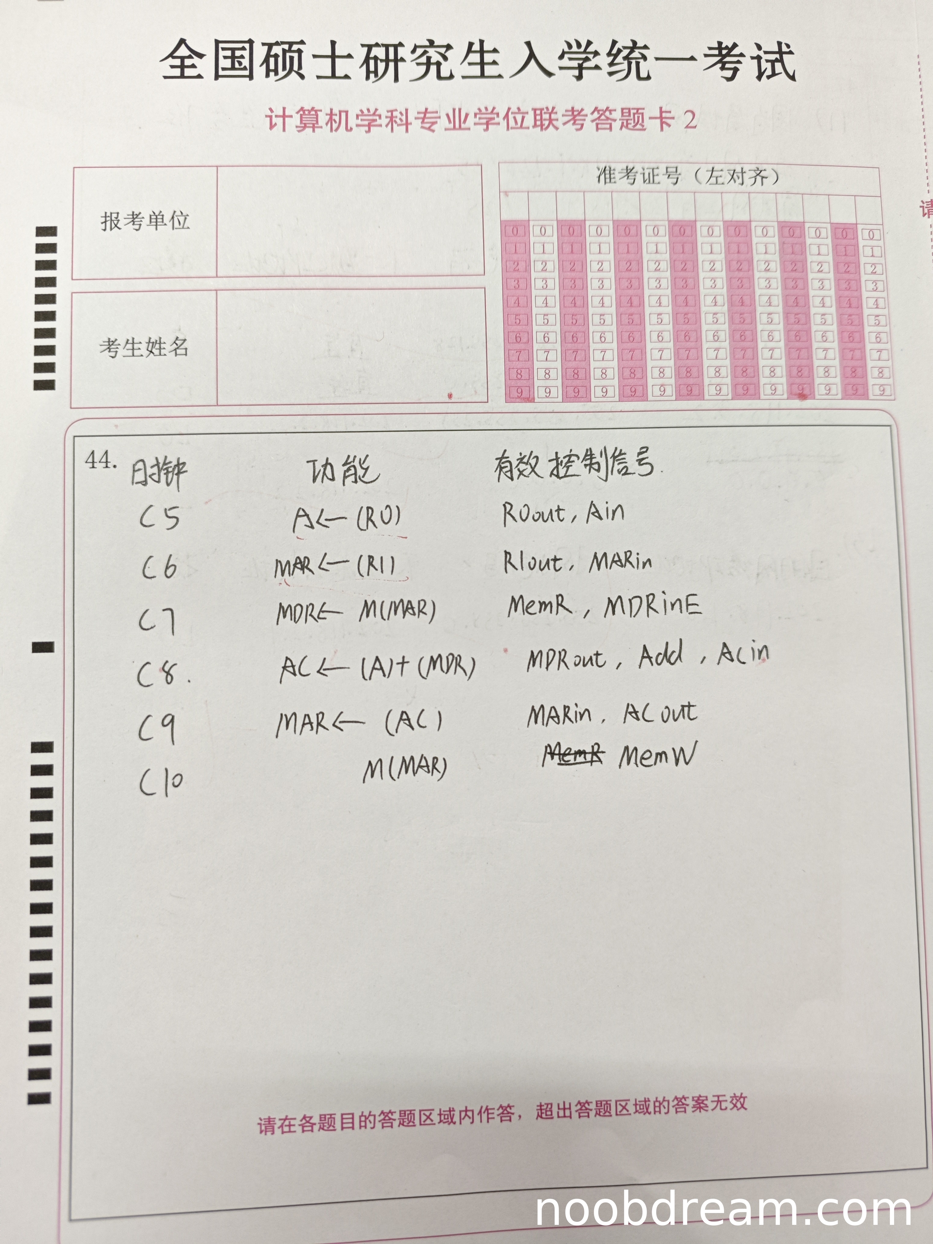- C5阶段将R0的值存入A寄存器,这一步本身没有问题,但时序安排不合理,因为R1的内容作为地址需要先送入MAR,而学生将这一步放在了C6。