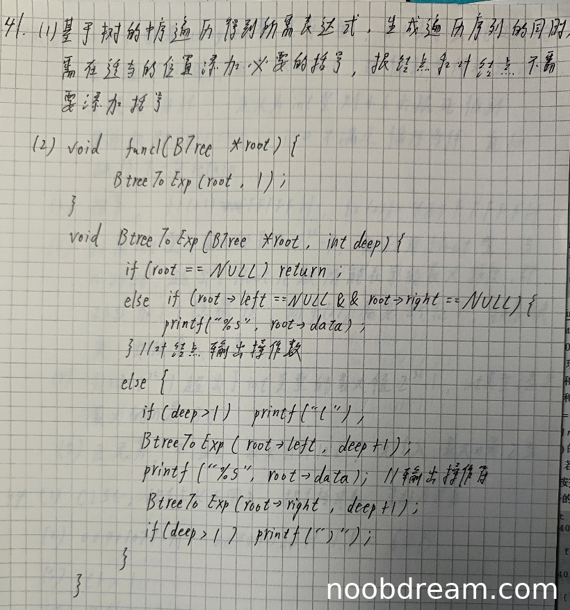 唯一细微差别是函数名funcl与标准答案的BtreeToE不同,但这不影响算法逻辑和功能,属于命名差异,不扣分。得10分。