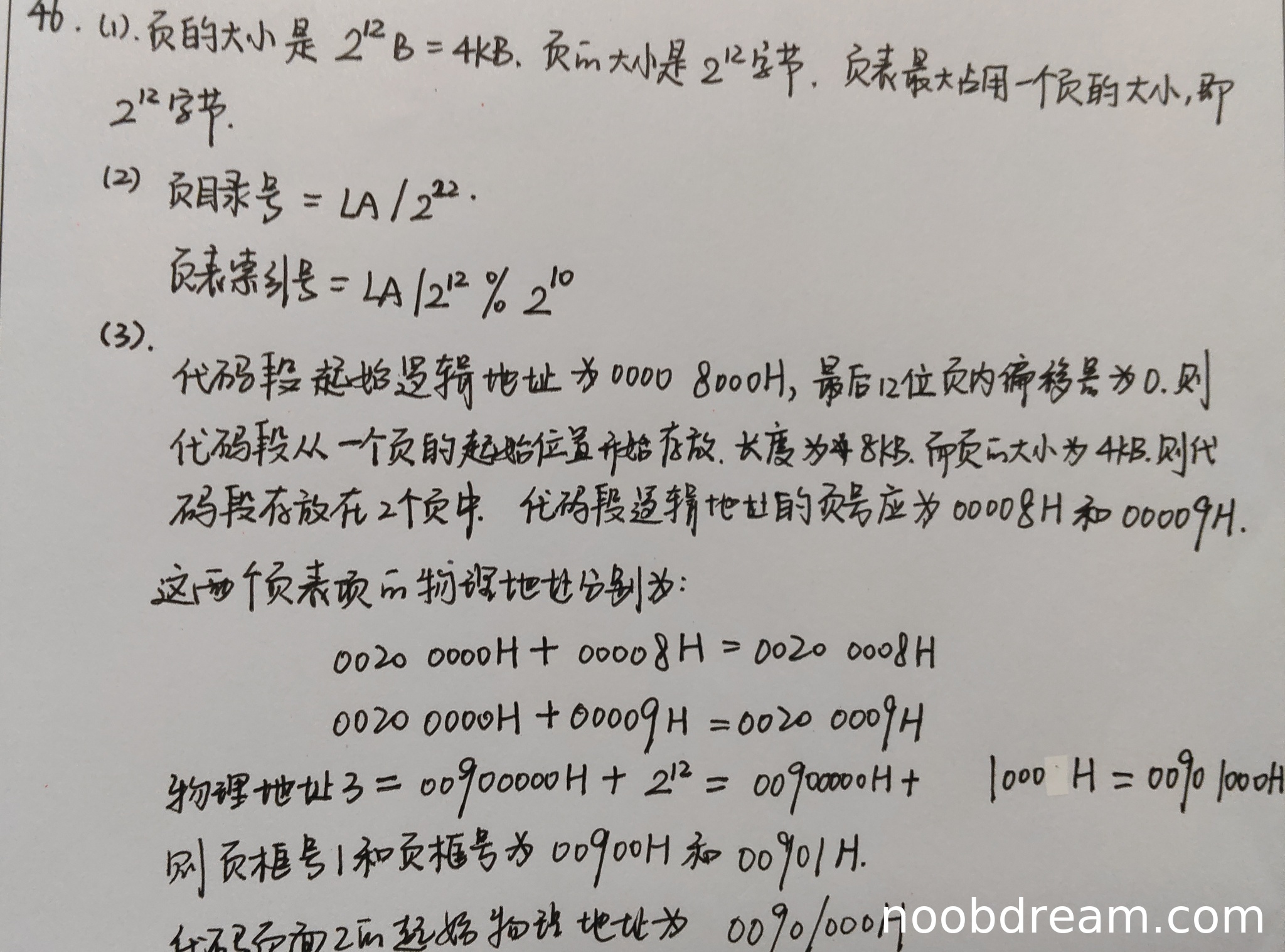 - 页表项物理地址应为 00200000H + 页号×4,学生计算为 00200000H + 页号(漏乘4)