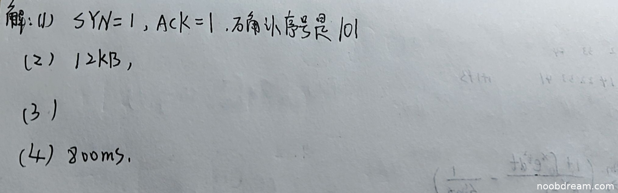 得分:3分。答案完全正确,符合TCP三次握手中第二次握手的特征。