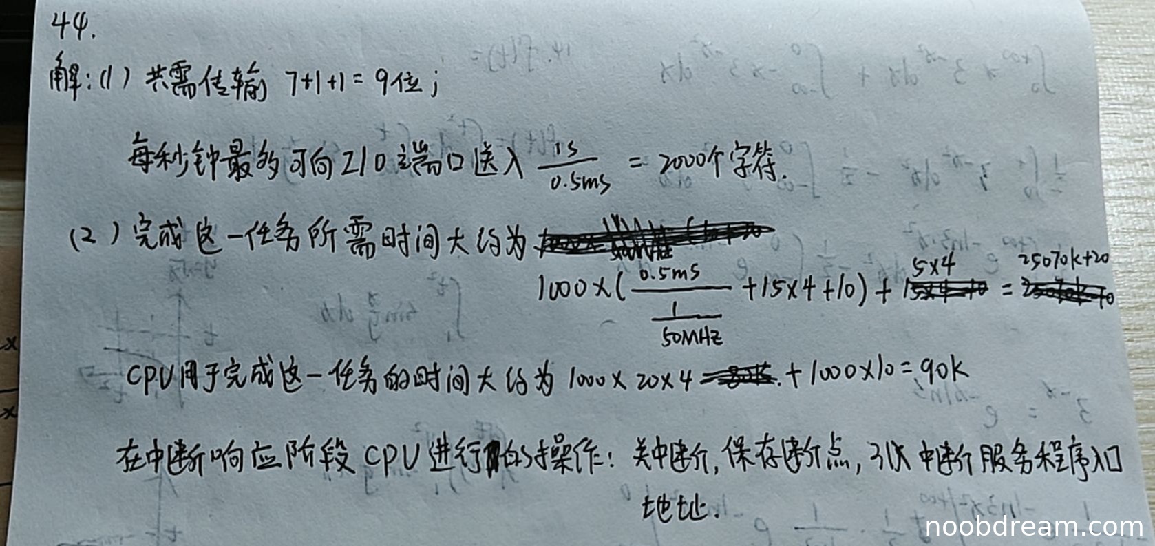 - 第三小问中断响应操作,回答“关中断、保存断点、引入中断服务程序入口地址”基本正确,得2分。