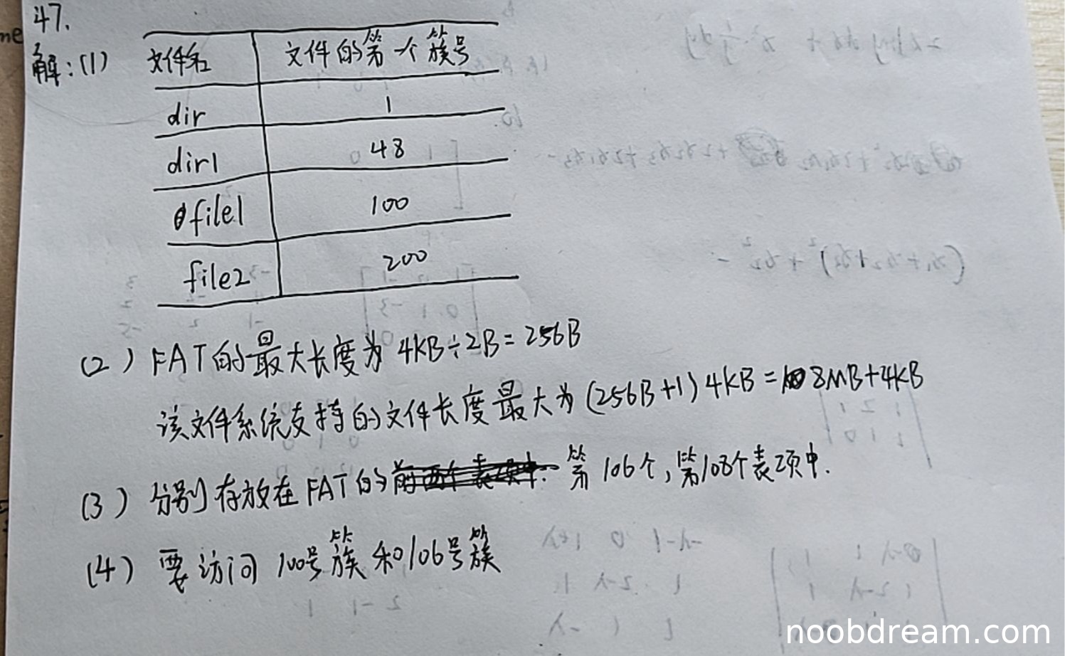 学生完全理解错了FAT表项的存储逻辑,得0分。