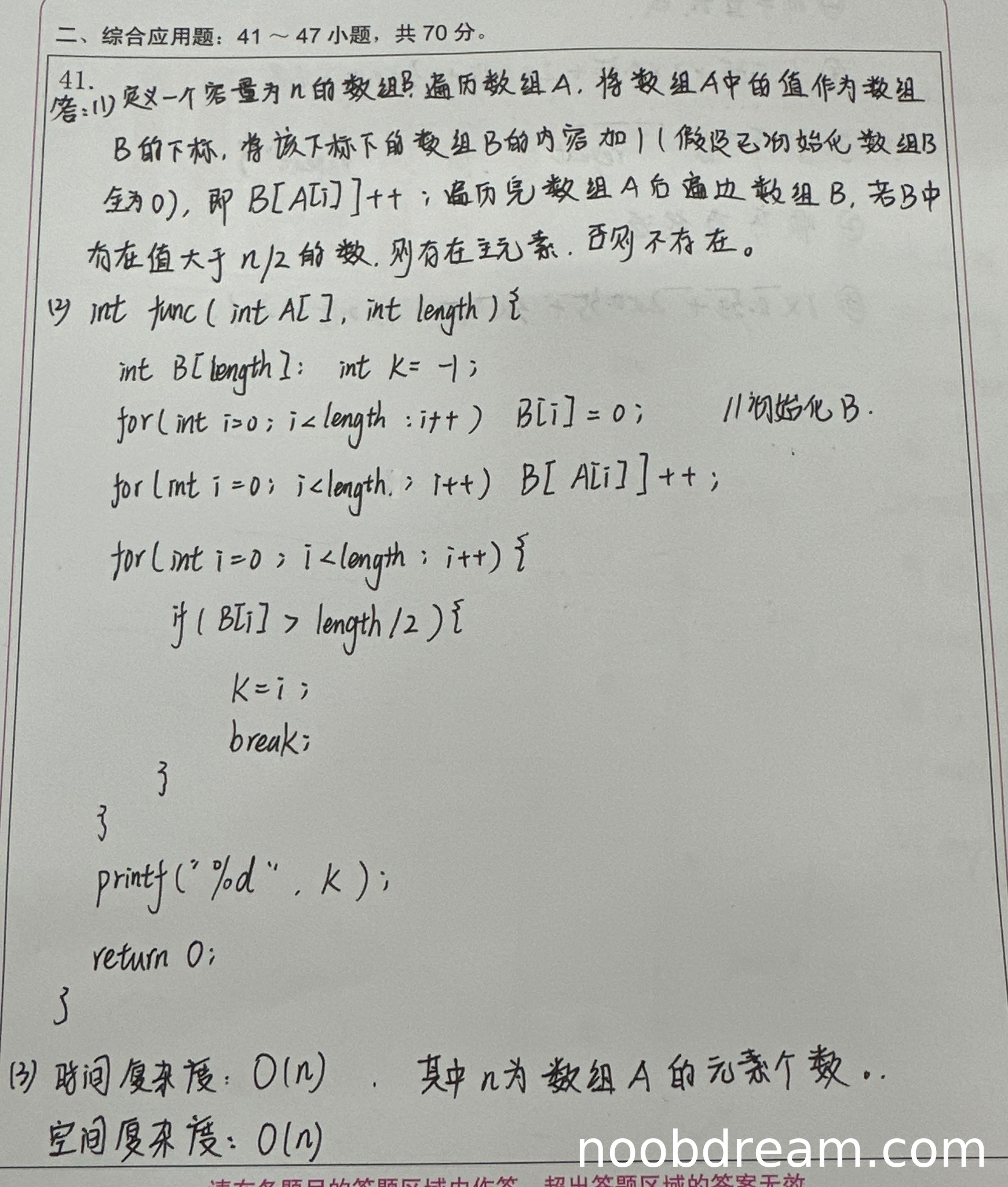 1. 函数最后使用了printf输出结果,但题目要求输出主元素或-1,应该直接返回结果而不是打印后返回0。这是一个逻辑错误,扣1分。