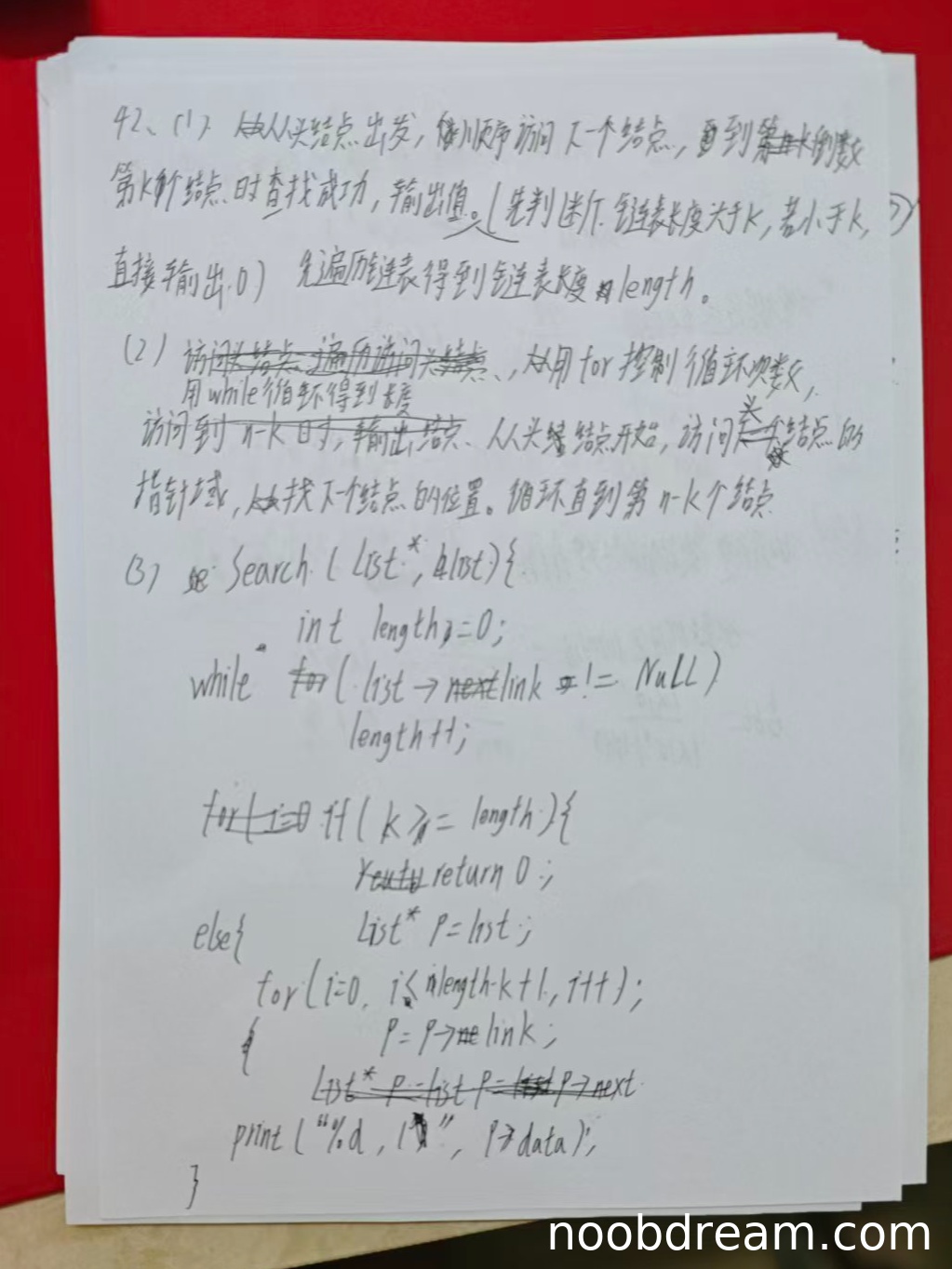 3. 在 else 分支中,定位结点的循环条件为 length - k + 1,但实际应该是 length - k(从头结点开始)