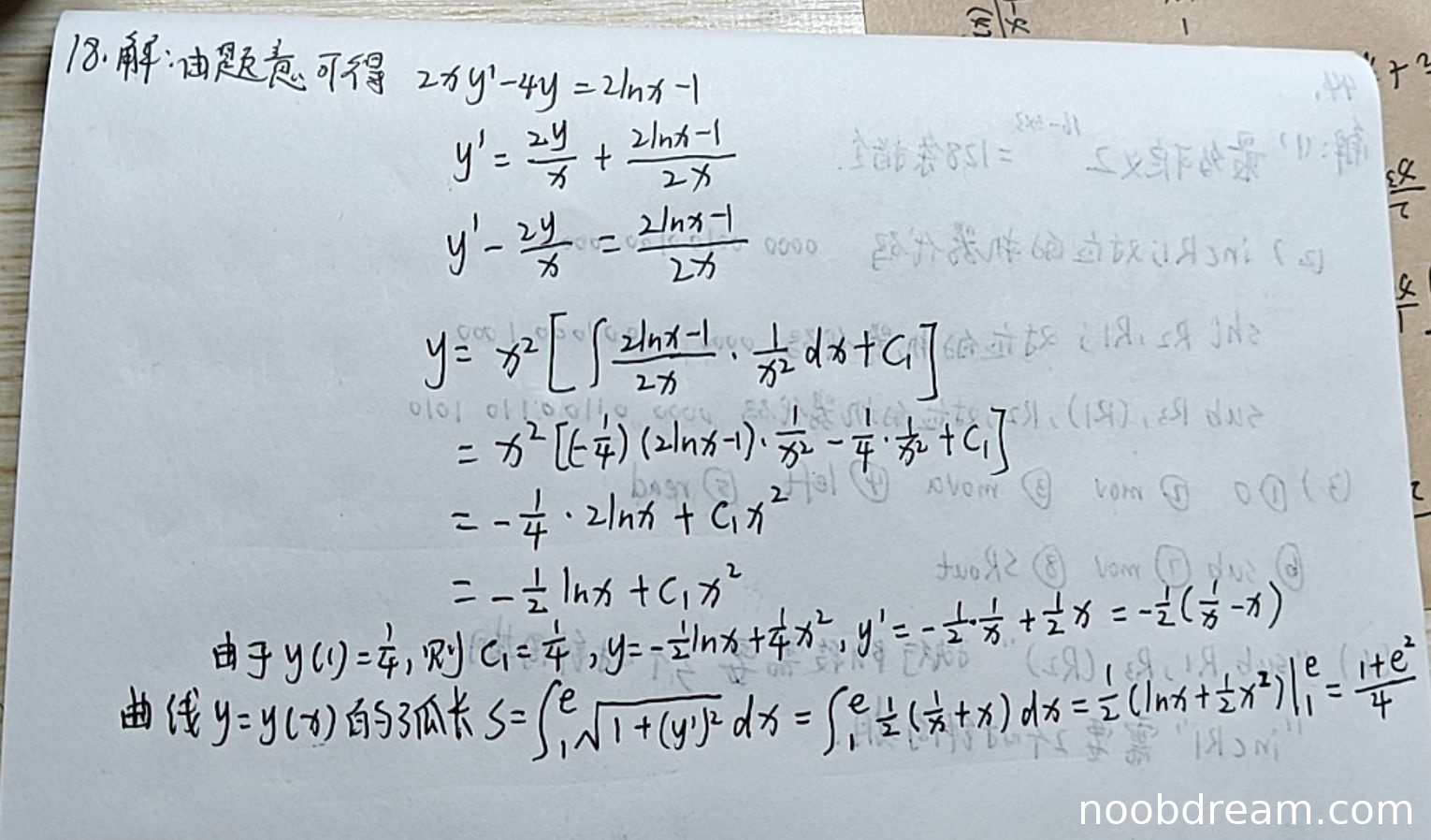 学生正确代入初始条件y(1)=1/4,并正确计算出常数C₁=1/4。该部分完全正确,不扣分。