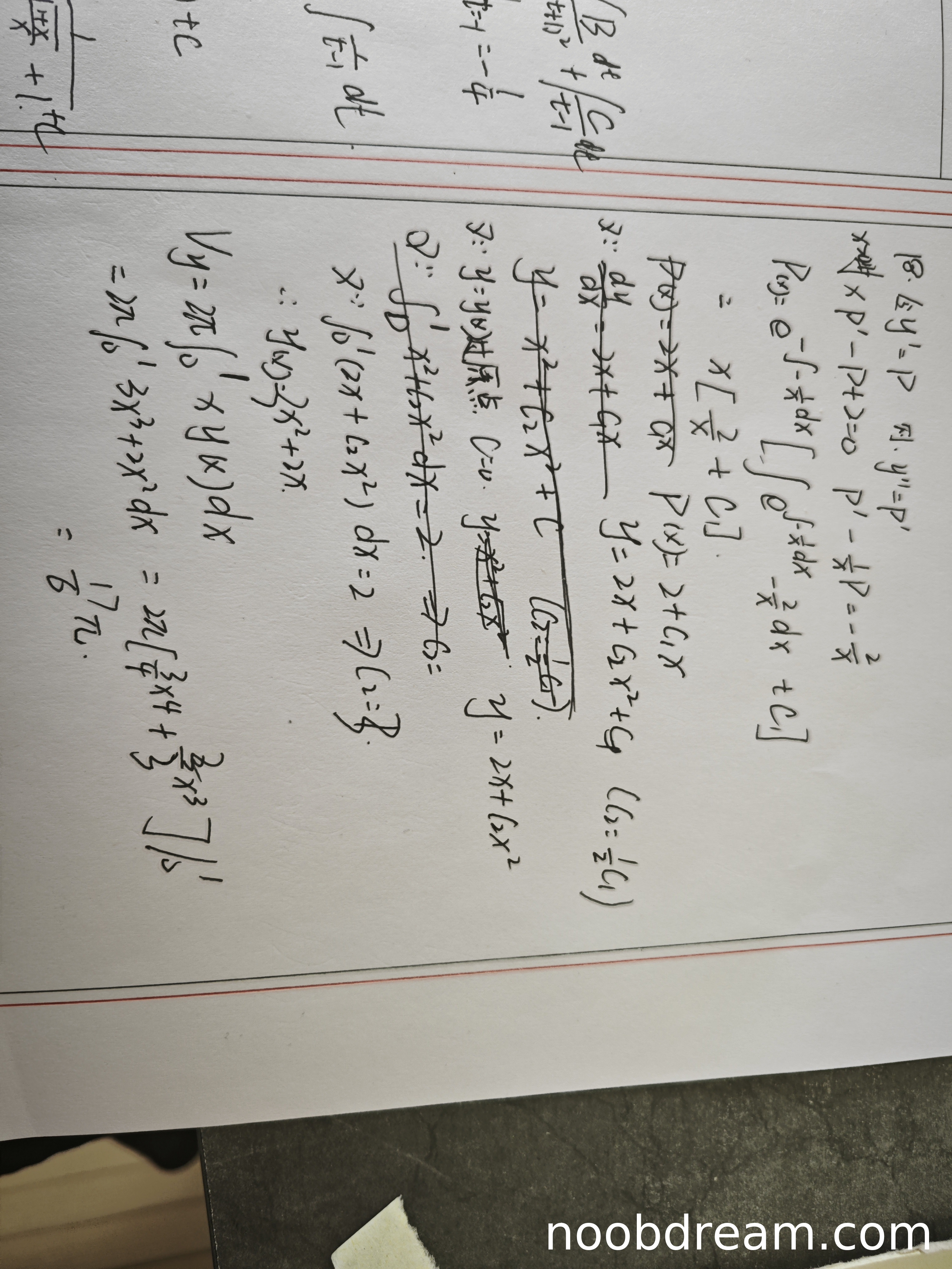 理由:由于第一步解微分方程错误,导致函数表达式错误。虽然提到曲线过原点,但得到的y=2x+6x^2是通过错误推导得出的,且没有利用面积条件确定常数。