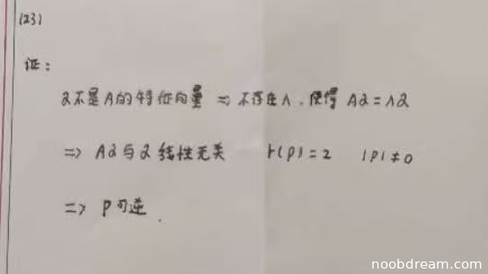 理由:第二问要求计算P⁻¹AP并判断A是否相似于对角矩阵,但学生完全没有涉及这部分内容。