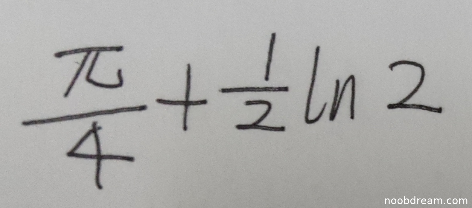 学生两次识别结果均为 \(\frac{\pi}{4} + \frac{1}{2}\ln 2\),与标准答案完全一致。该题是填空题,只需最终结果正确即可得满分。根据评分规则,正确则给5分,错误则给0分,本题禁止给步骤分。学生答案正确,因此得5分。