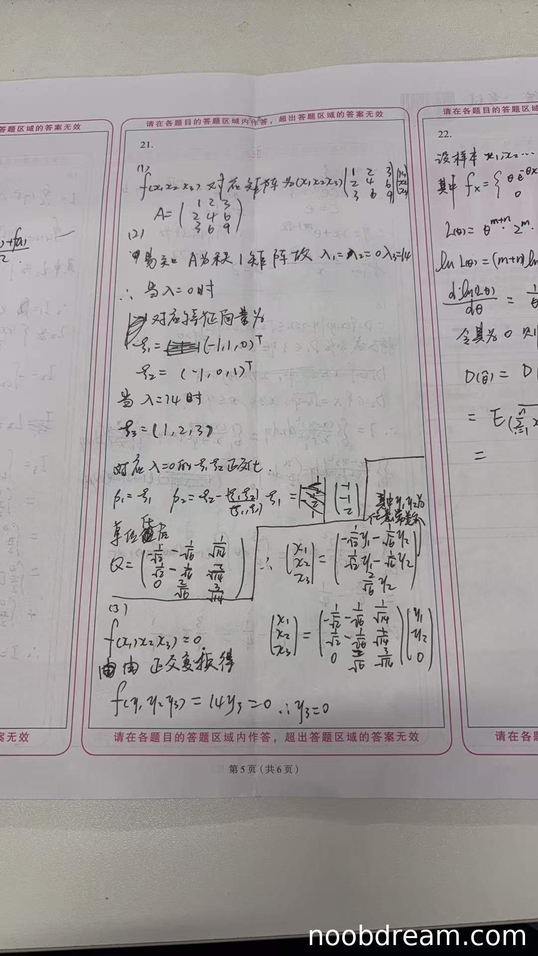 虽然思路正确,但计算错误较多。考虑到学生正确找到了特征值和基本特征向量方向,但正交化过程错误,扣3分。得3分。