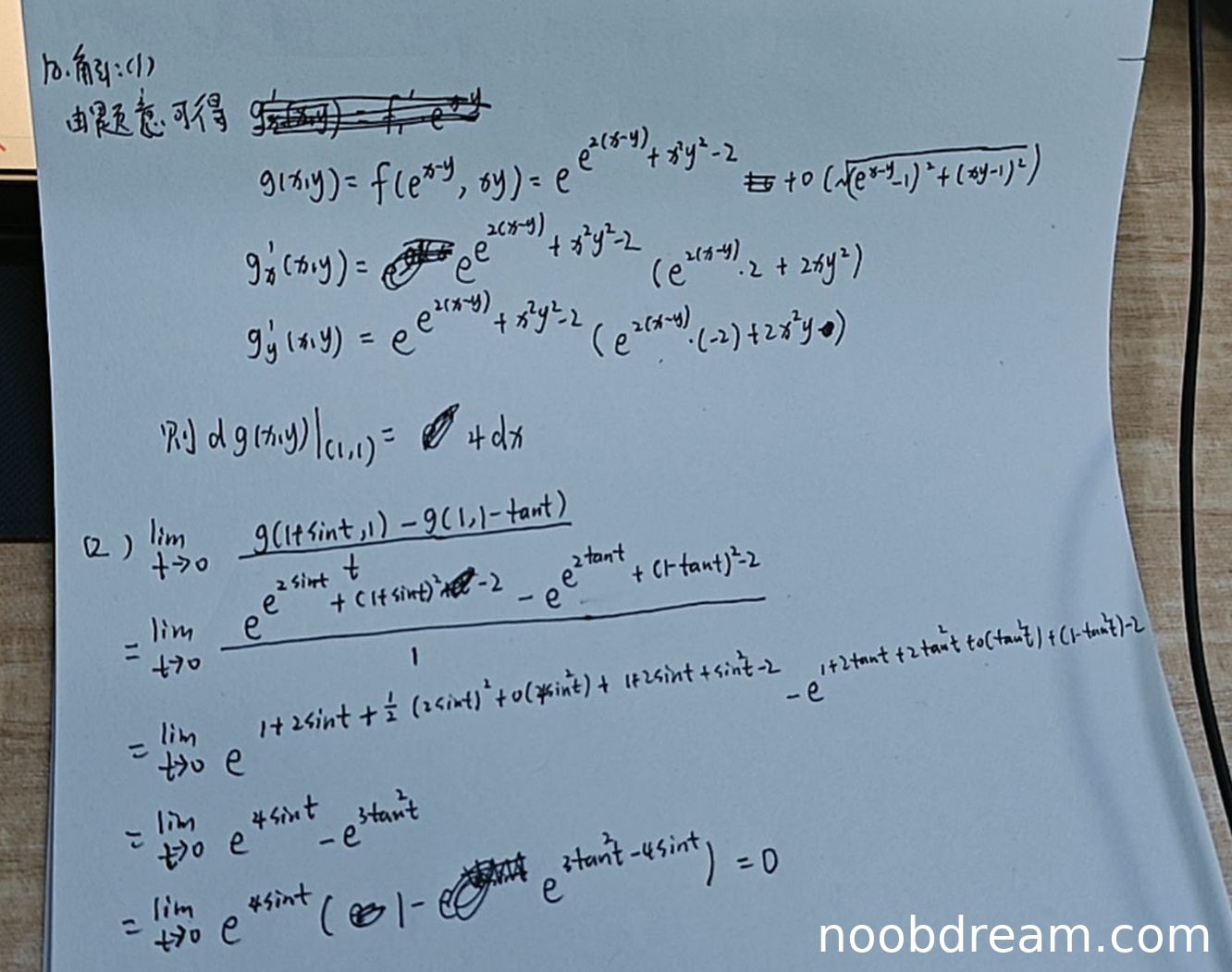 - 在计算极限时,错误地使用了 \(g(x,y) = e^{2(x-y)} + x^2y^2 - 2\) 这一表达式,这与(Ⅰ)中的错误一致。