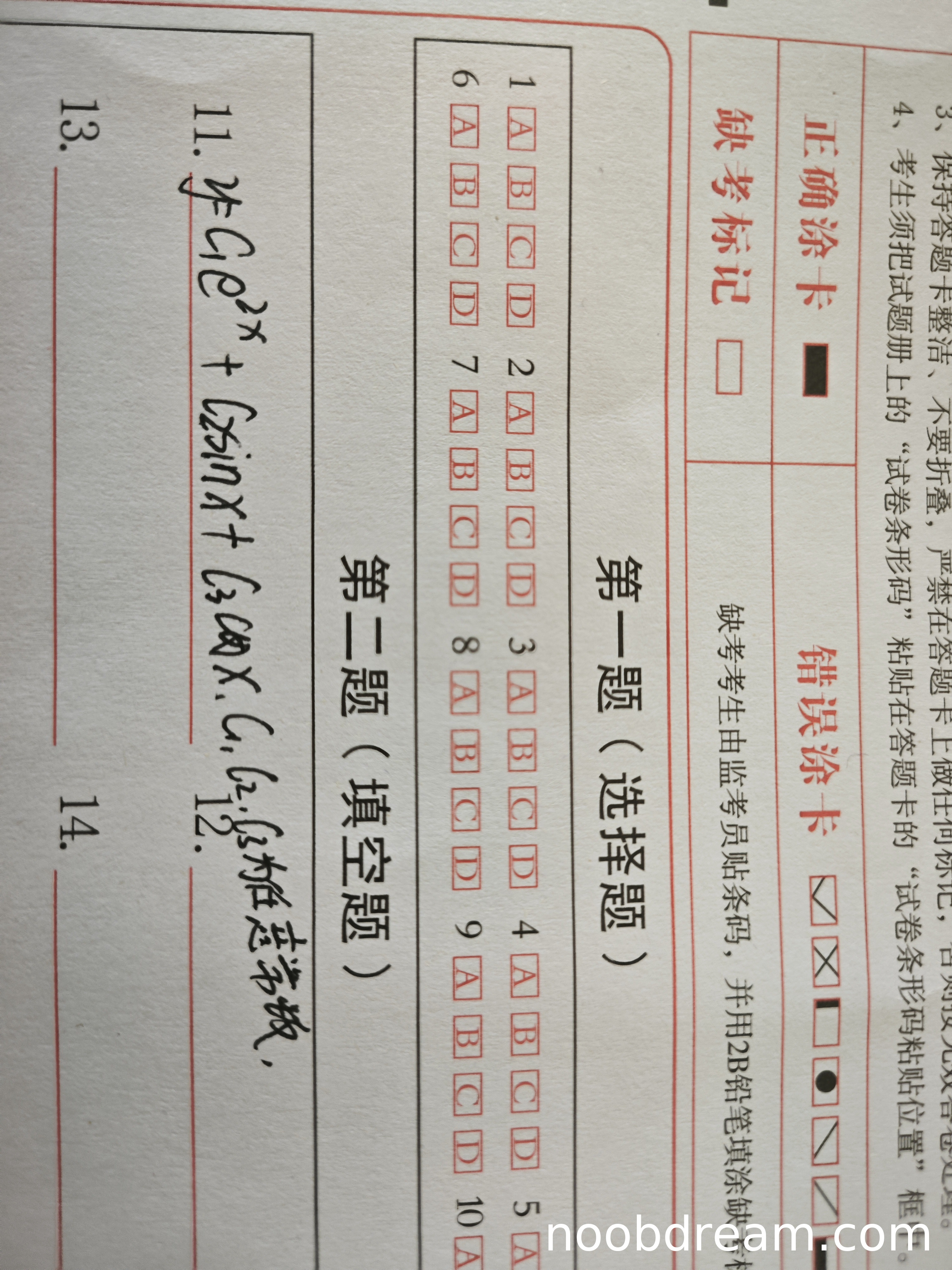 第2次识别结果:$4e^{2x}+C_{2}\sin x + C_{3}\cos x$,其中$C_{1},C_{2},C_{3}$为任意常数。