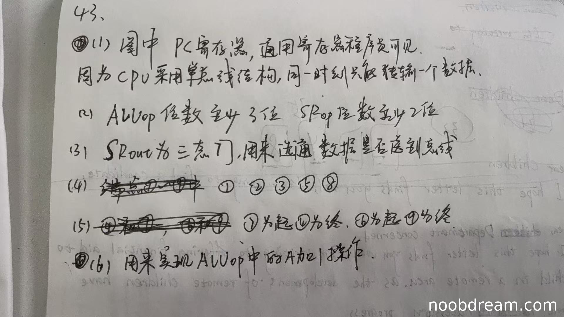 学生回答"用来实现ALUop中的A加1操作"是不正确的。MUX输入端为2主要是为了实现PC+2操作,因为指令字长16位、按字节编址。得0分。