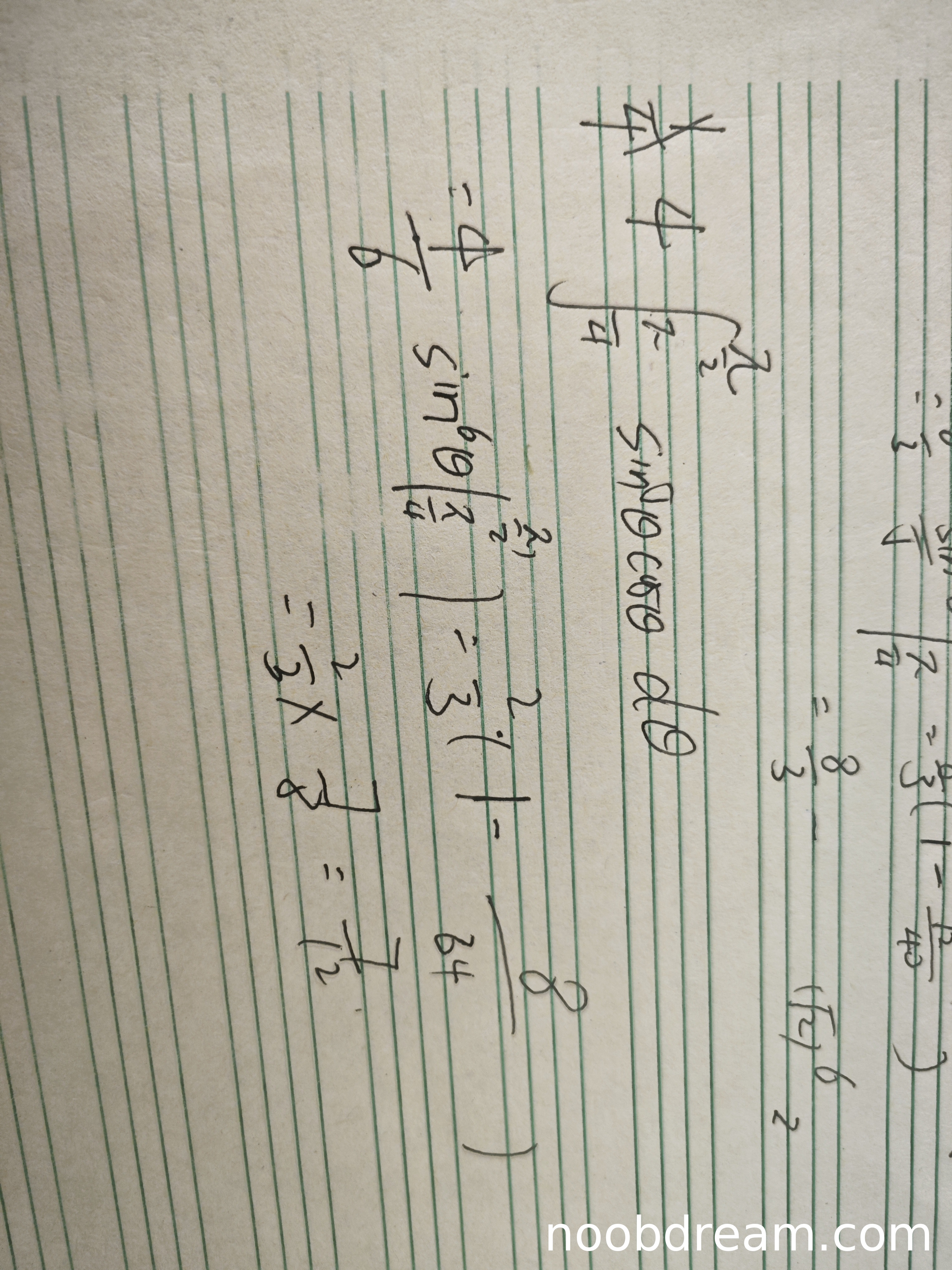 但是,学生只计算了角度积分部分,没有考虑径向积分部分,也没有给出完整的二重积分结果。根据题目要求计算 \(\iint_{D}xy d\sigma\),学生的答案不完整,没有得出最终数值结果 \(\frac{7}{12}\)。