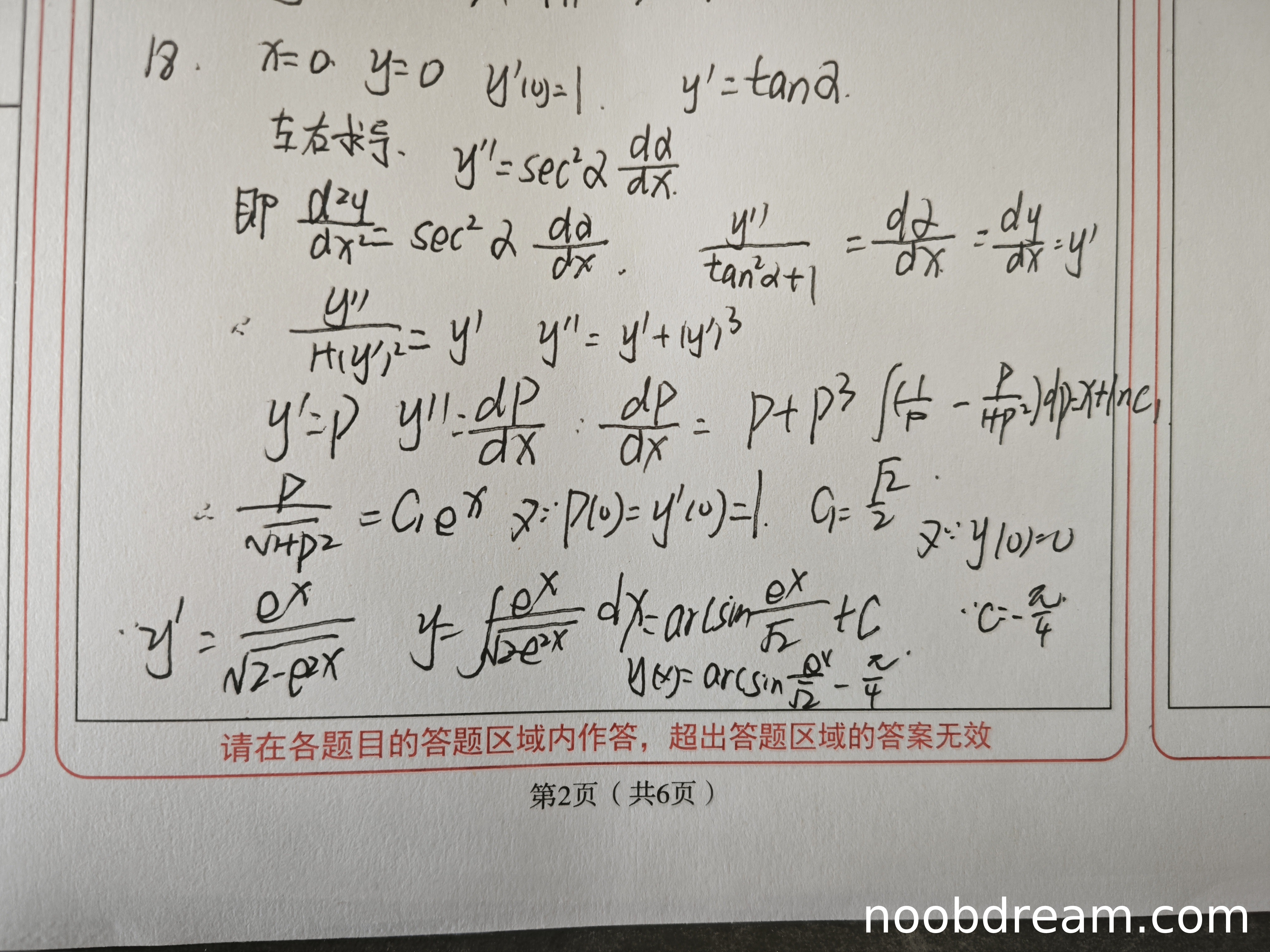 学生令 y'=p,y''=dp/dx,得到 dp/dx=p+p³,但在分离变量积分时出现错误: