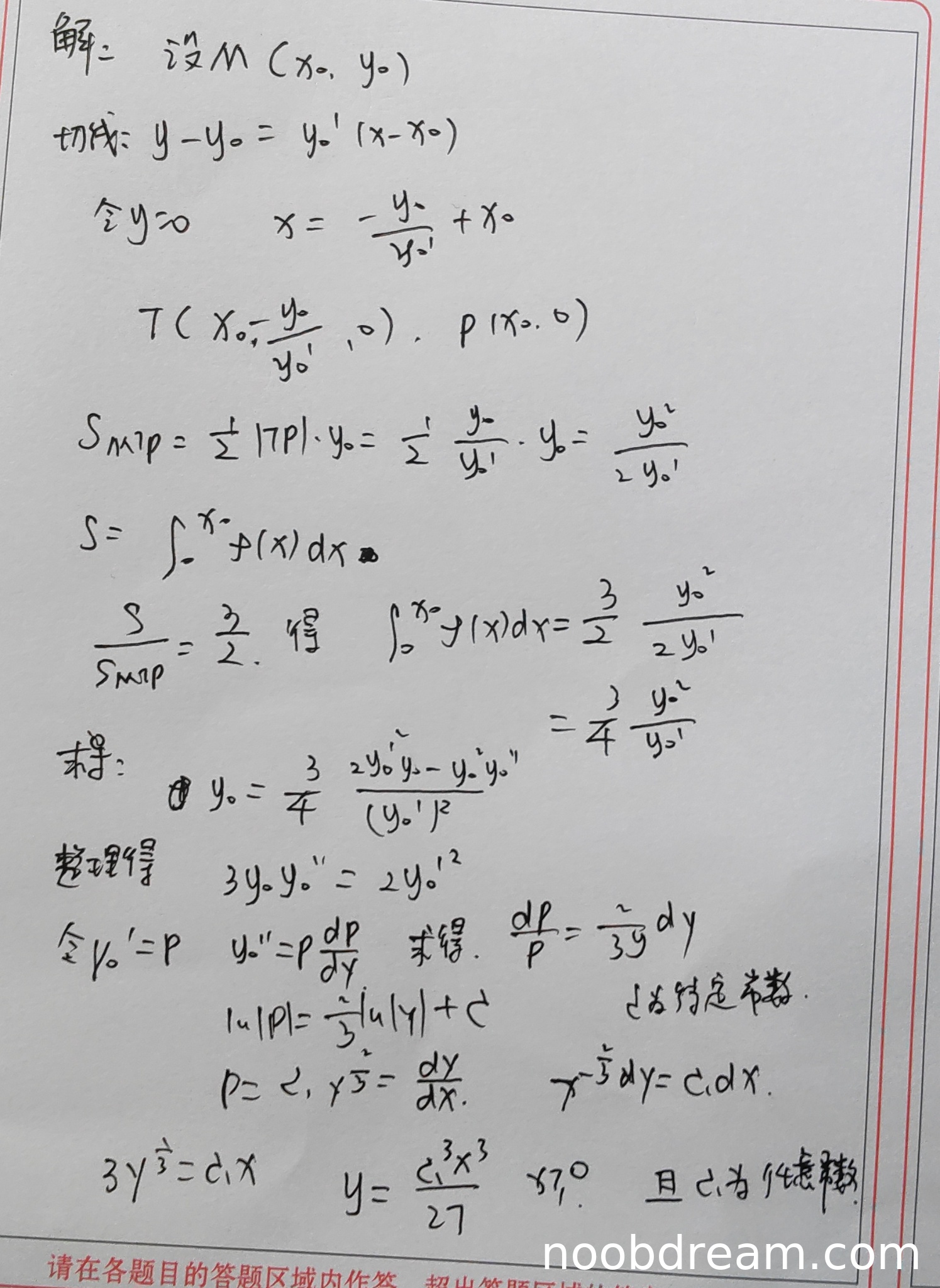 - 第1次识别中微分方程求解时写错积分(写成了$x^{-\frac{2}{3}}dy$),但最终结果正确