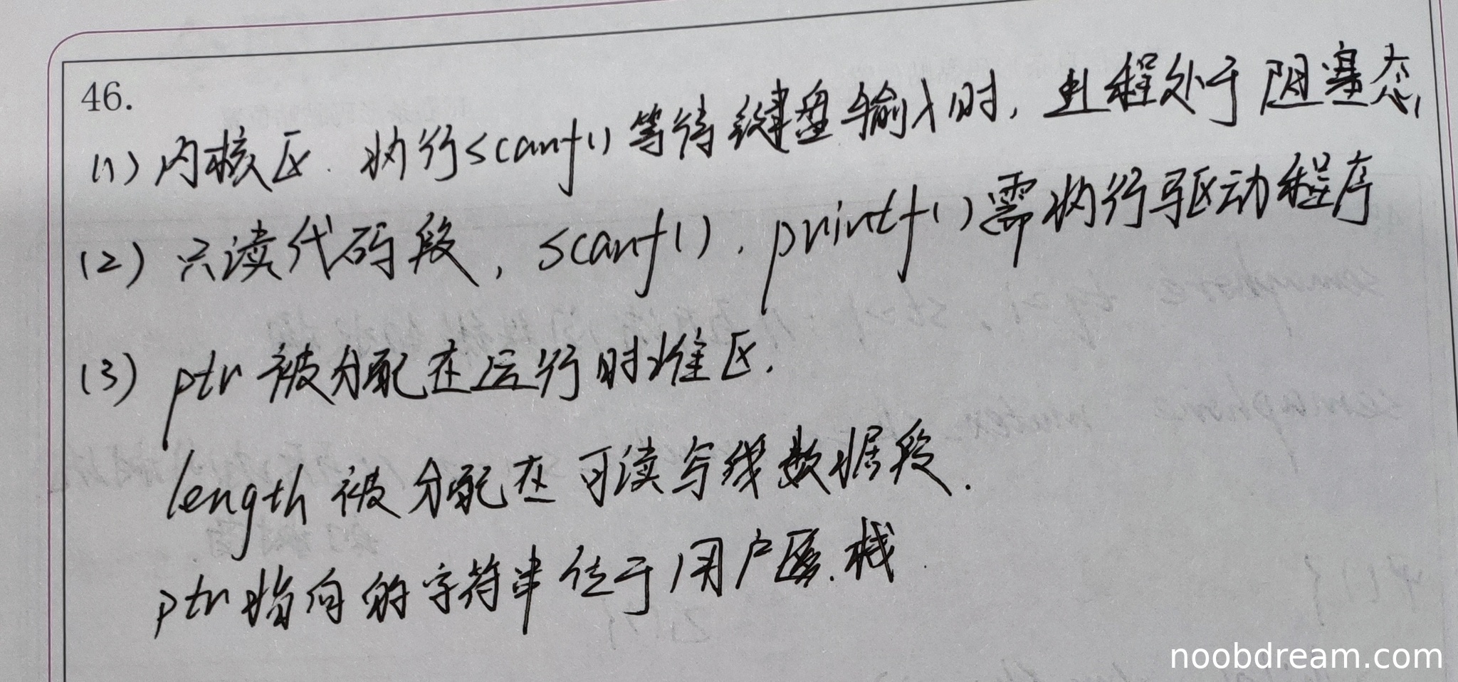 - length是局部变量,应位于用户栈,但学生回答"可读写数据段"错误