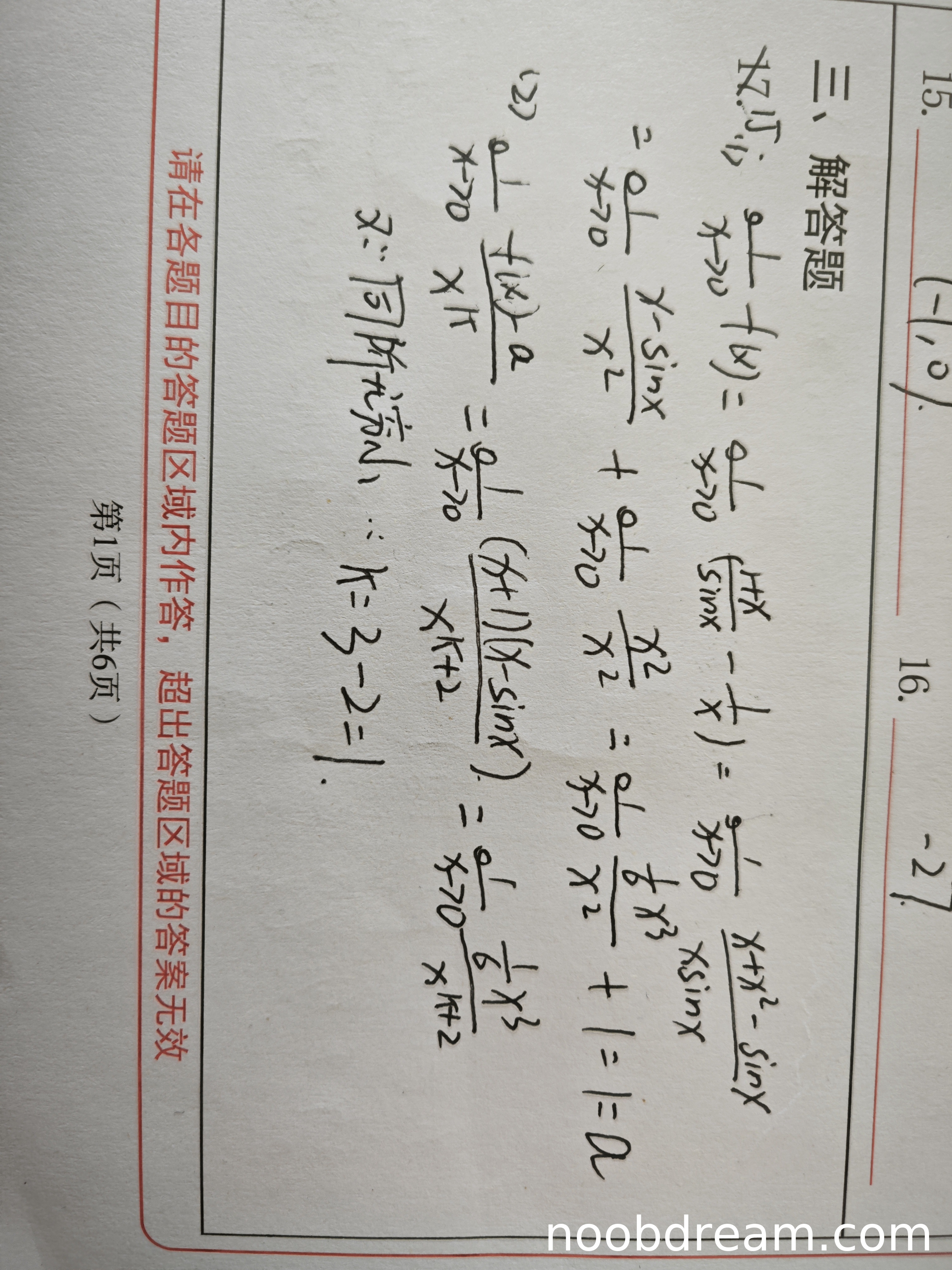 学生第一次识别结果中直接给出a=1,但过程混乱且存在错误(如x→0 f(x)=0错误,后续步骤逻辑不清)。第二次识别结果中,学生尝试分析极限但过程存在多处错误: